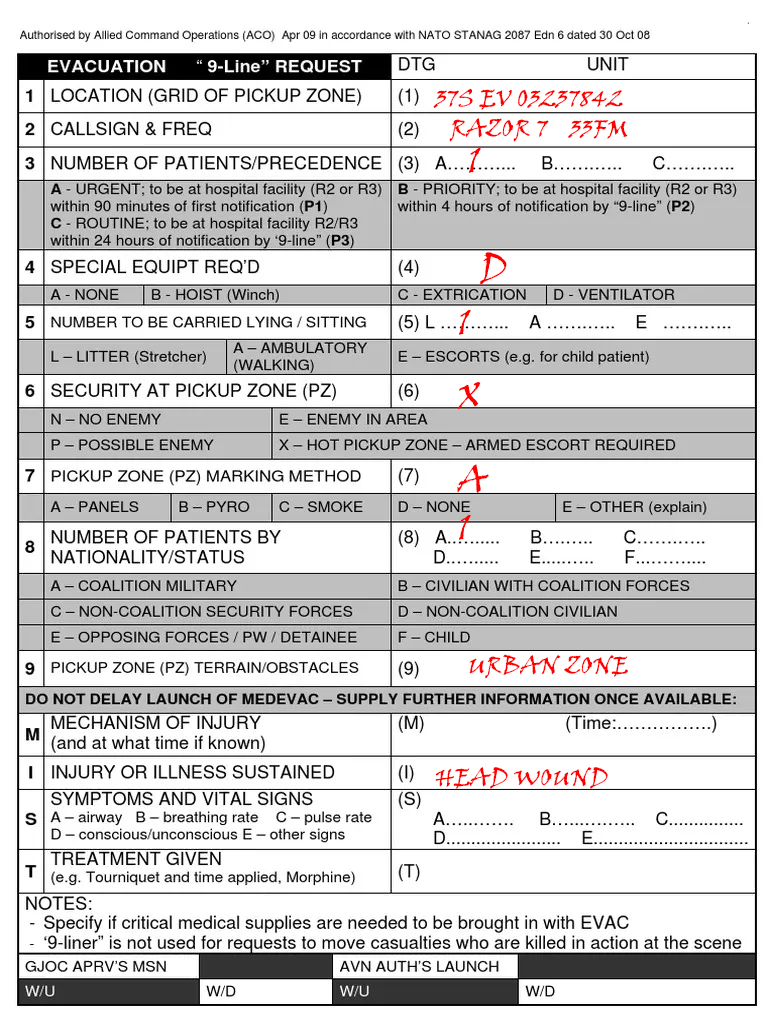 You have an urgent Evacuation 9-line Request. (SEE KNEEBOARD)