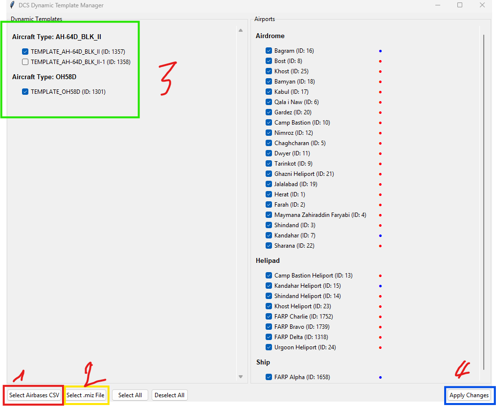 This tool helps you set up dynamic aircraft spawning in your DCS World missions. You will be able to configure each airbase with all different option and assign Dynamic Template for aircraft