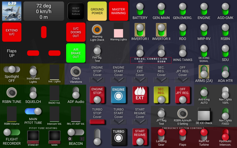 Two-page control "panel" for Touch Portal Android application, powered by DCS-COINS plugin.