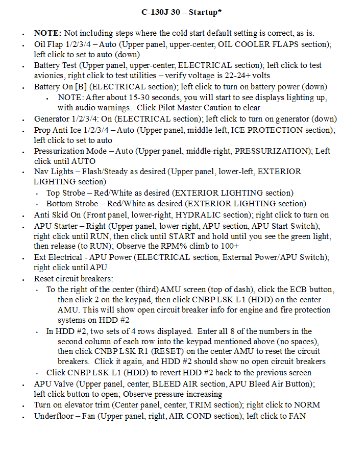 Kneeboards for C-130J-30 Hercules for startup procedures and weapon employment.