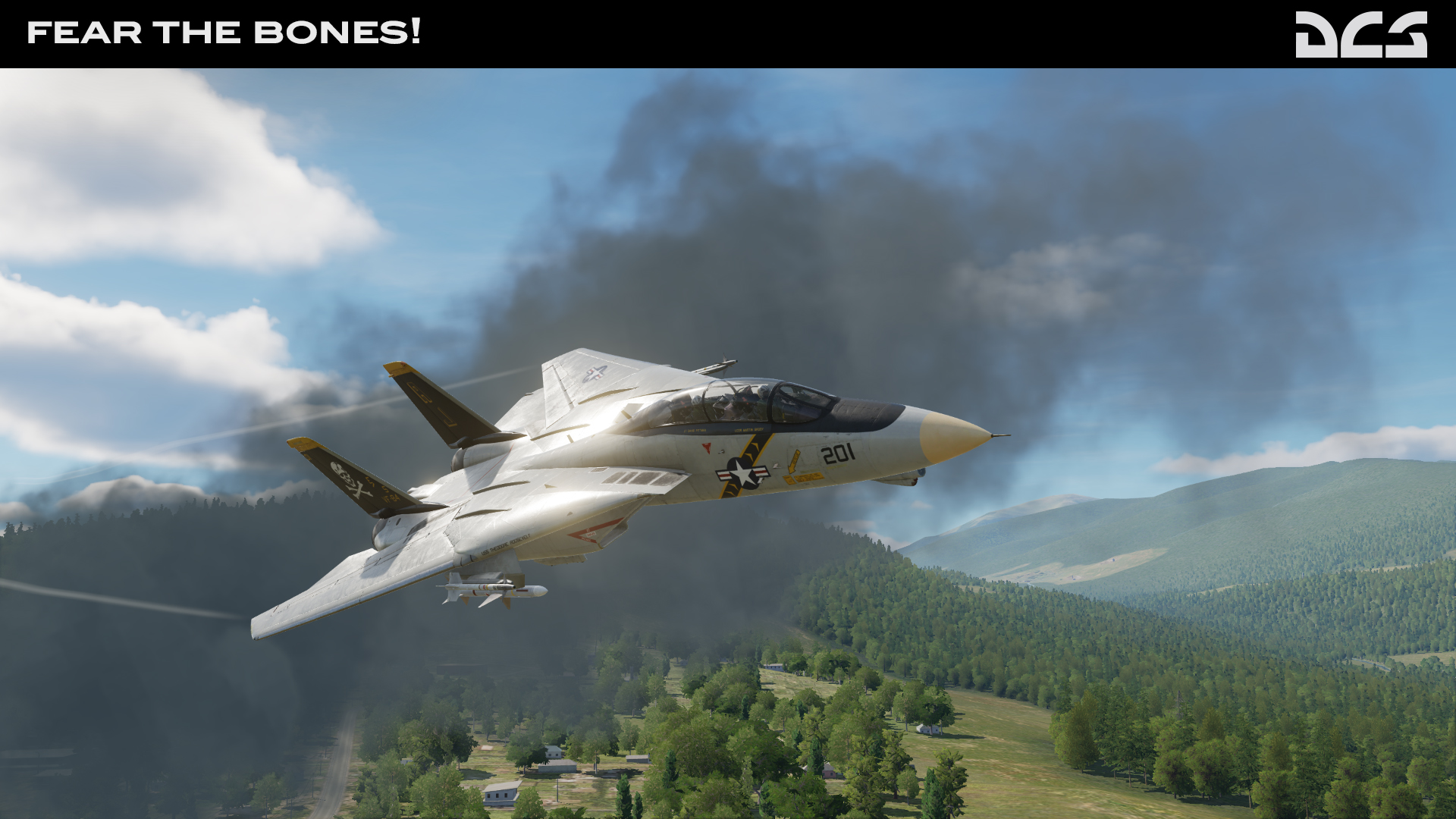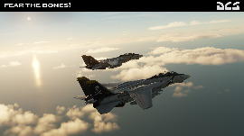April 1989. The USS Valley Forge cruiser had an accident on the Black Sea just off the coast of the Soviet Union, and the USS Theodore Roosevelt is being sent there to support the rescue operation with VF-84 on board. Jaws, Jester, Ghost, Pyro, Caveman, Grip, Elvis and Glory, all hot shot F-14A Tomcat fighter jocks of the 'Jolly Rogers' are itching to see some action, but they might get more than they bargained for. Join them in fighting MIGs, intercepting Bears, defending the fleet, escorting Alpha strikes and much more in this relaxed, story-driven campaign that is an entertaining mix of realism and 1980s style fiction. Kick the tires, light the fires and make them 'Fear the Bones!'