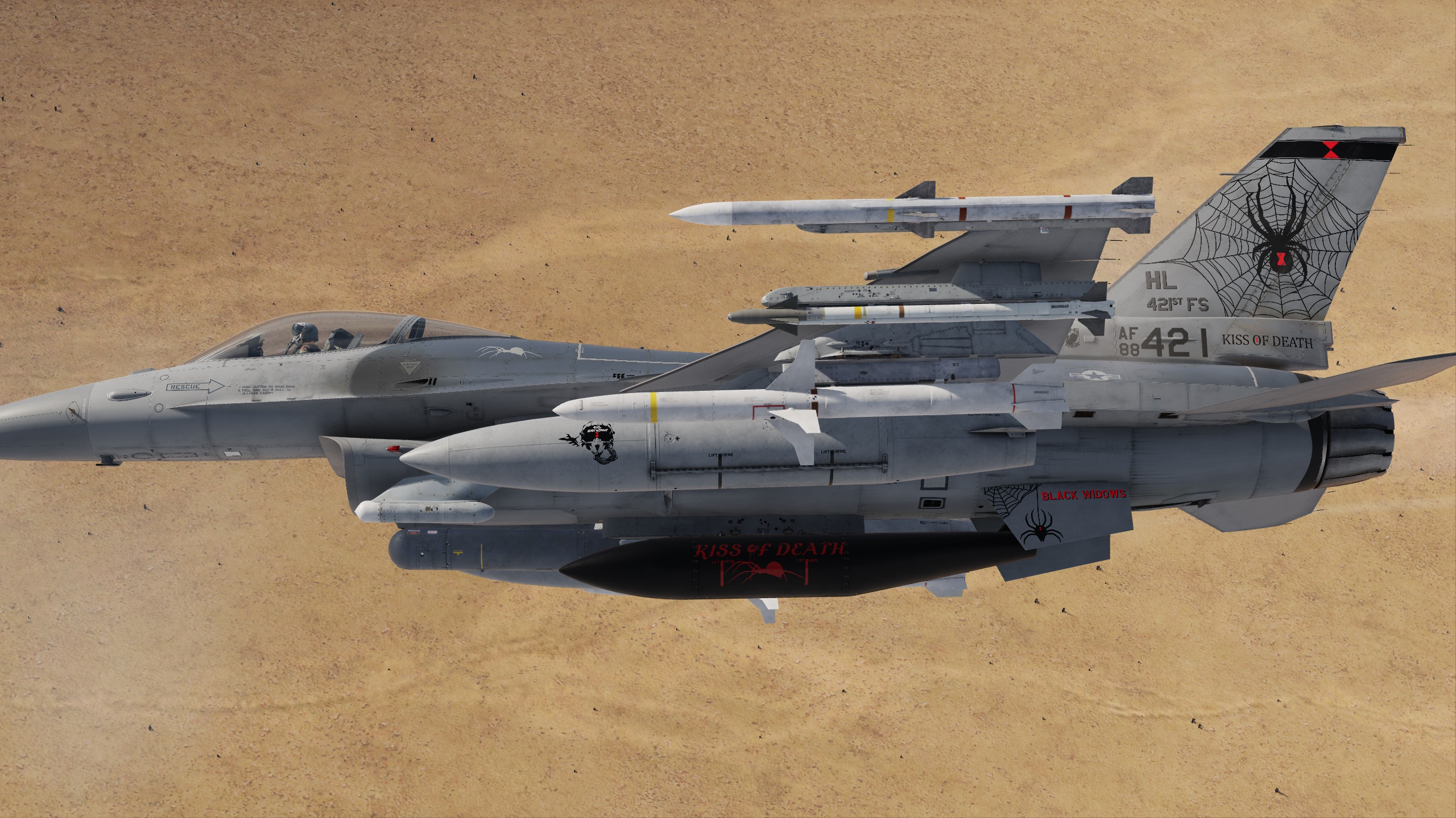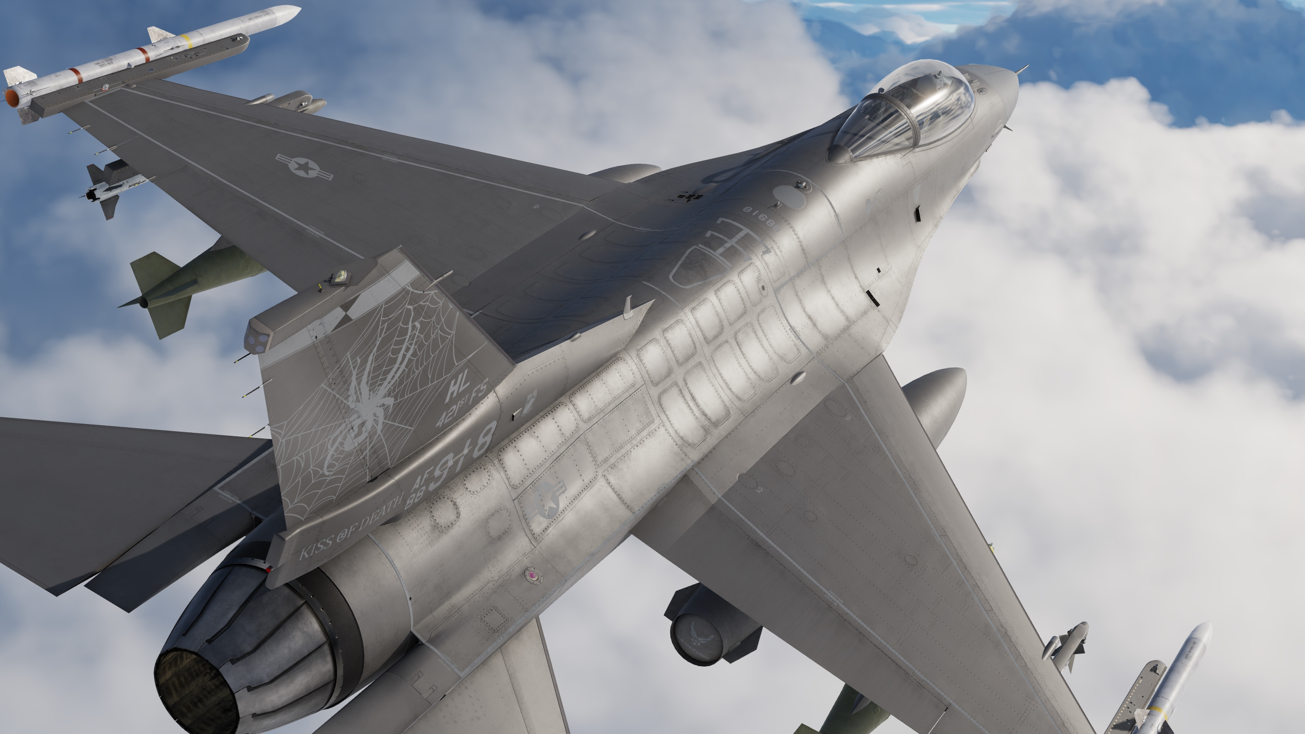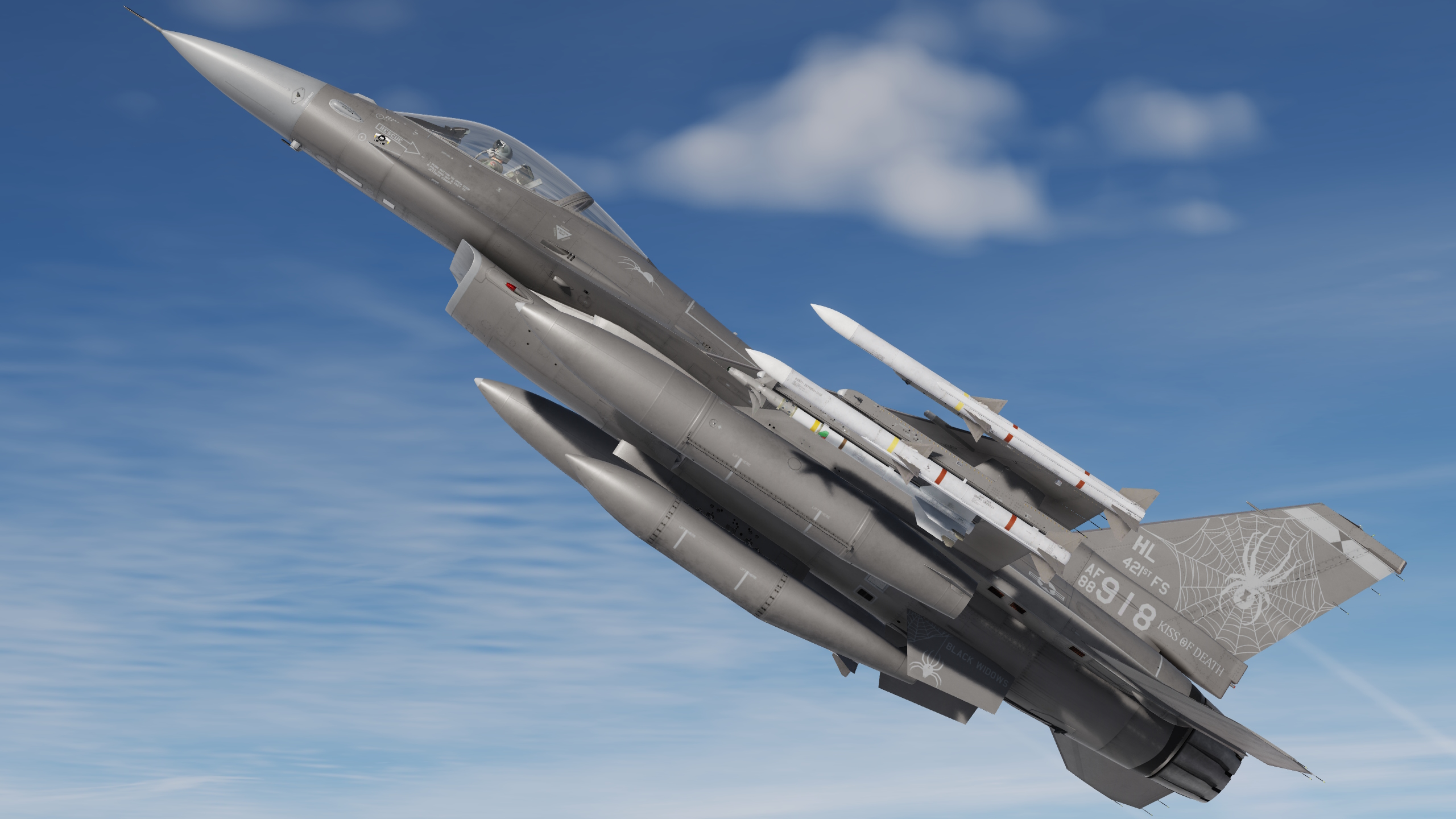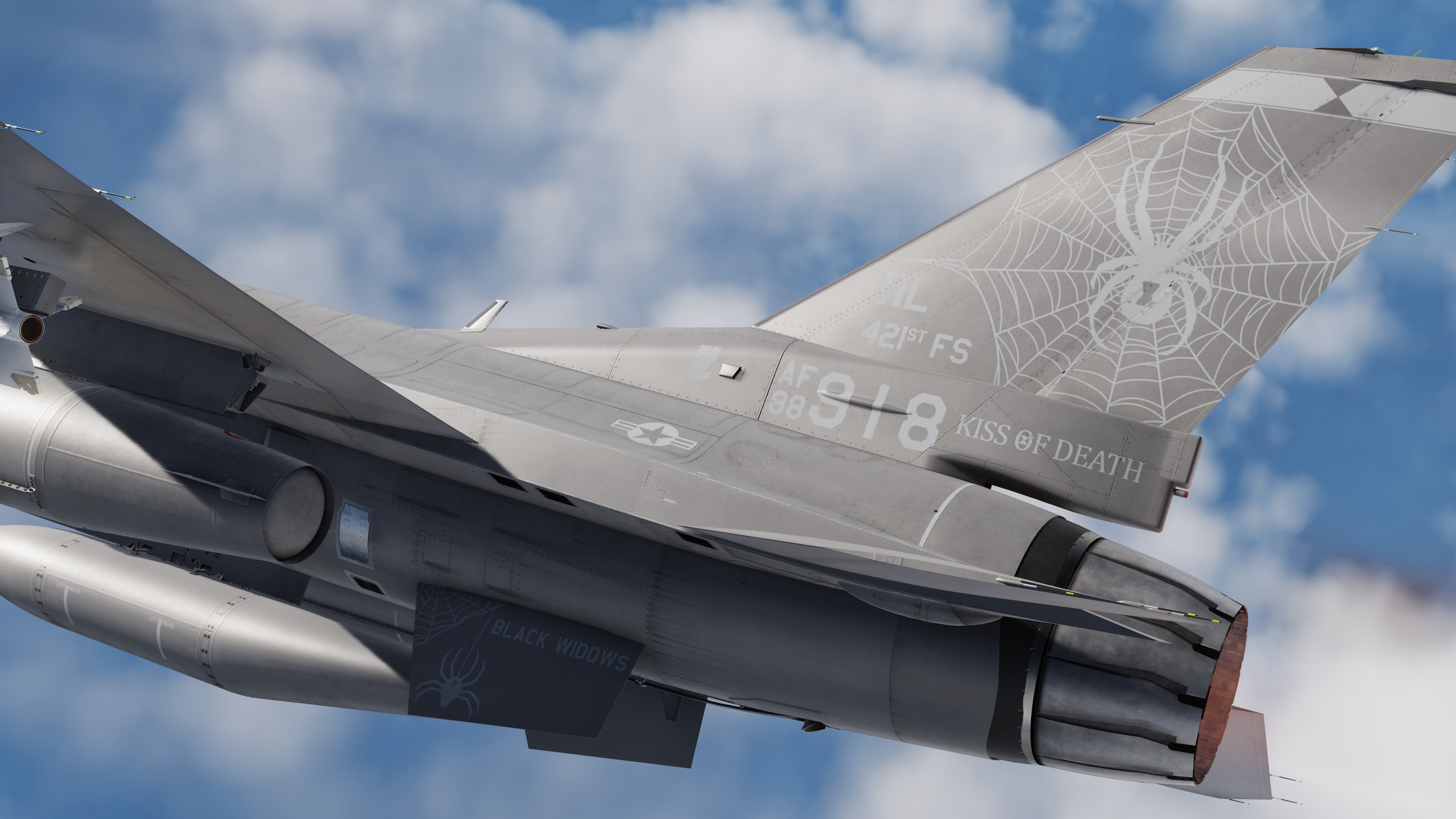 Version 2 of my 421st fighter squadron in Have Glass V. They didn't fly have glass F16s before switching to the F35 as far as I can tell so this is a fictional skin. They had a really dull and boring livery considering their mascot is a black widow. See detail screen for changes.