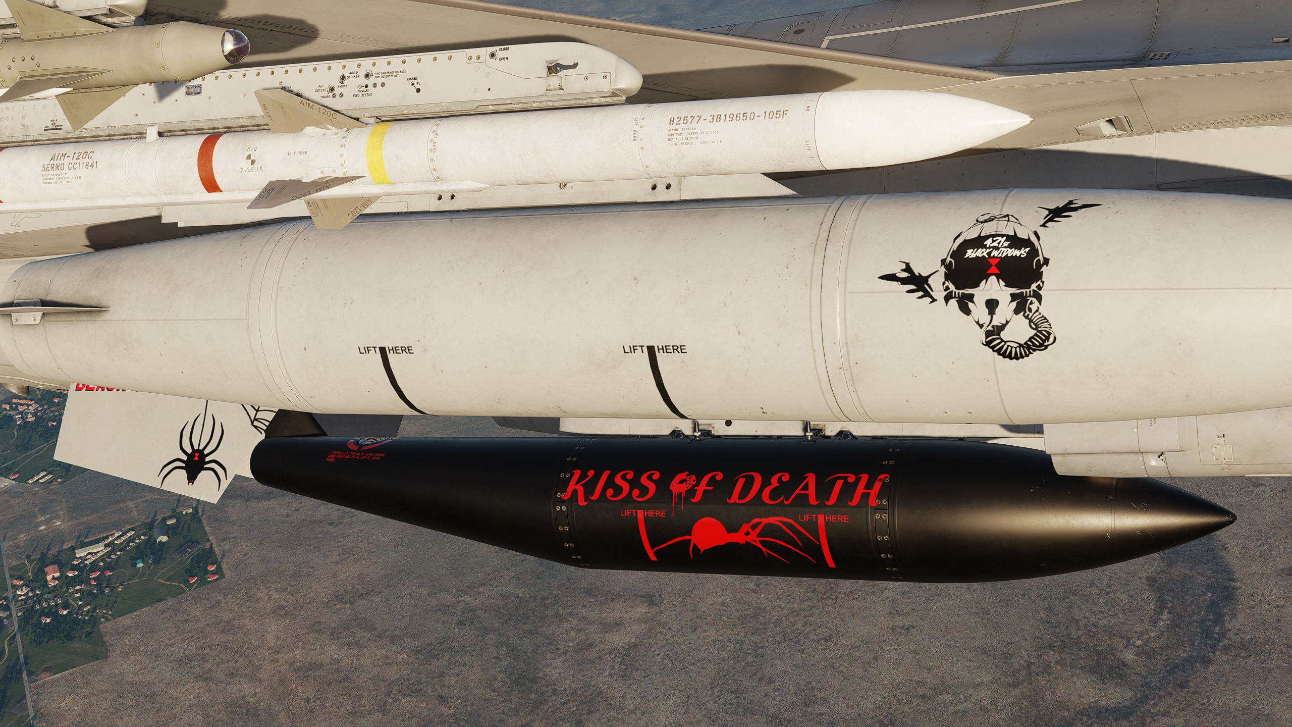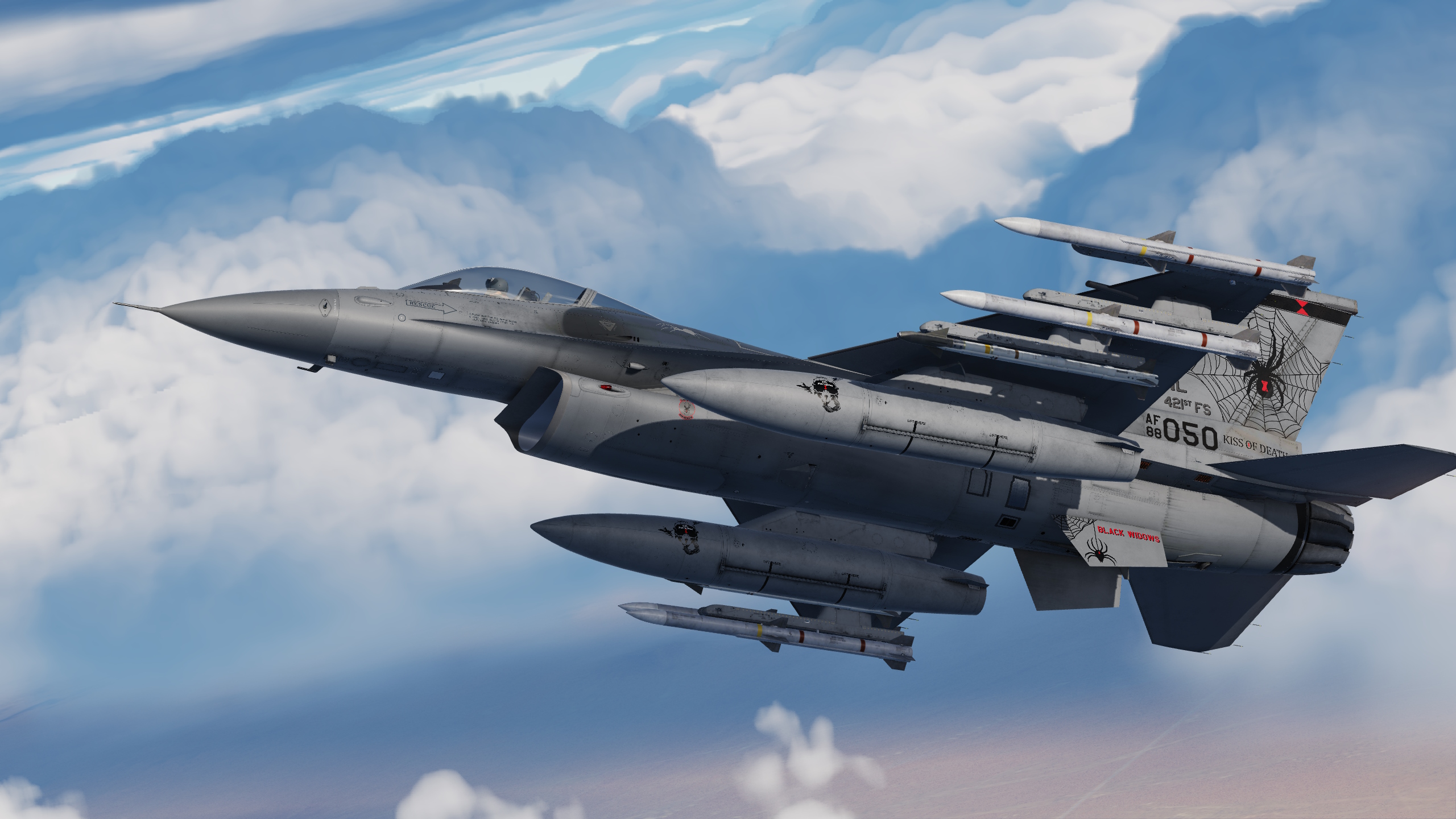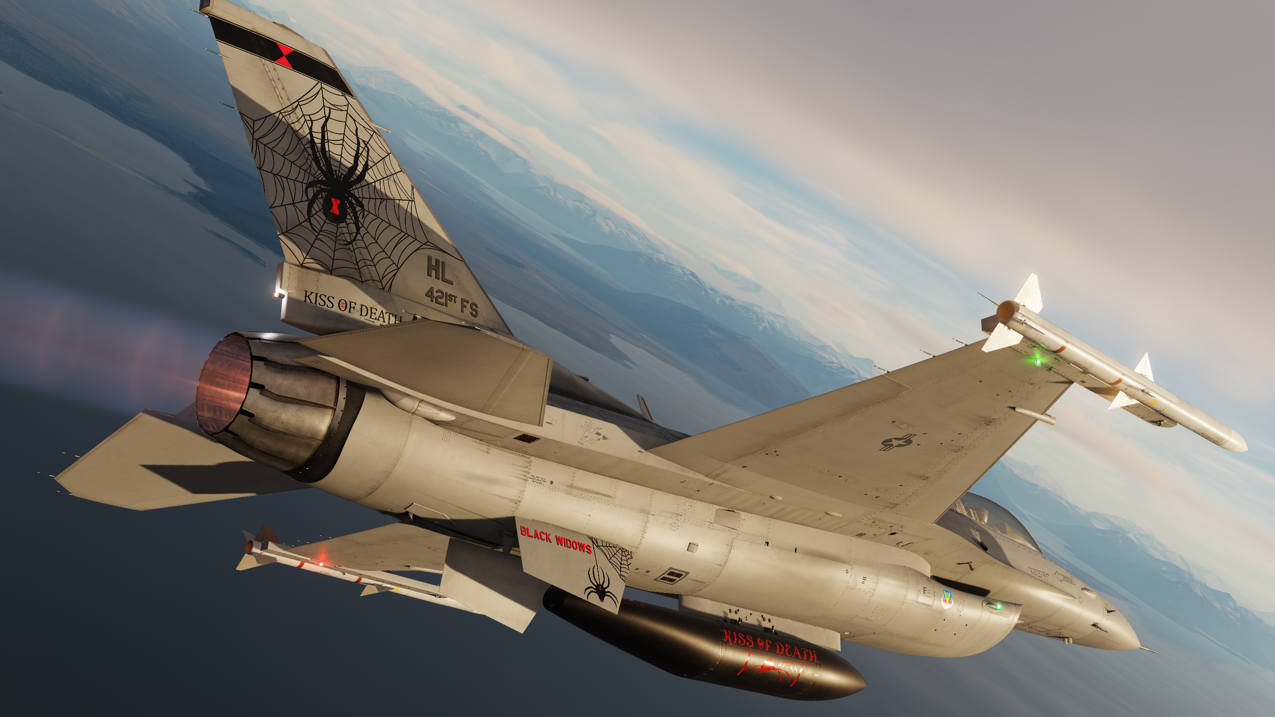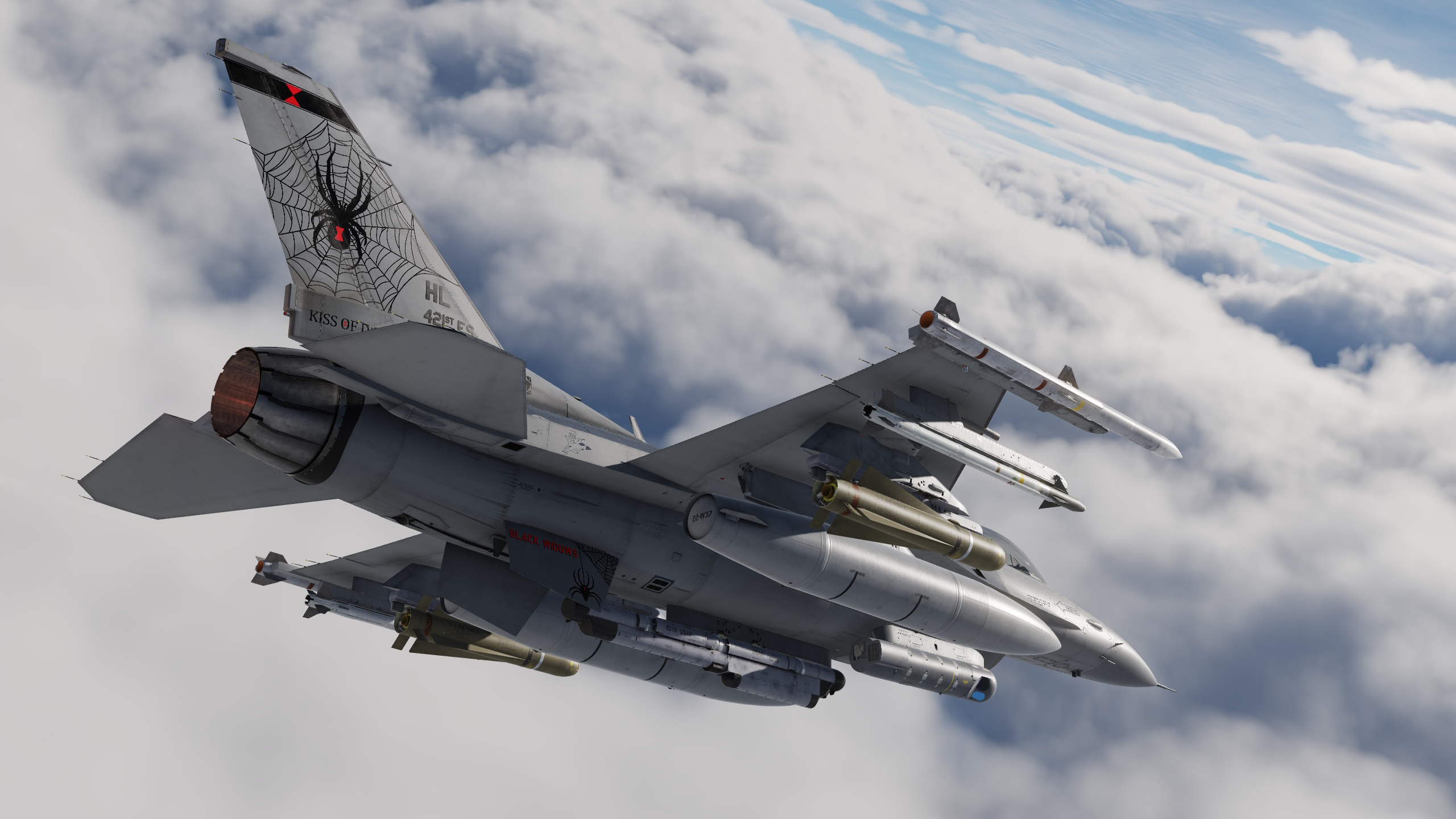 Version 2 of my 421st fighter squadron in Have Glass V. They didn't fly have glass F16s before switching to the F35 as far as I can tell so this is a fictional skin. They had a really dull and boring livery considering their mascot is a black widow. See detail screen for changes.