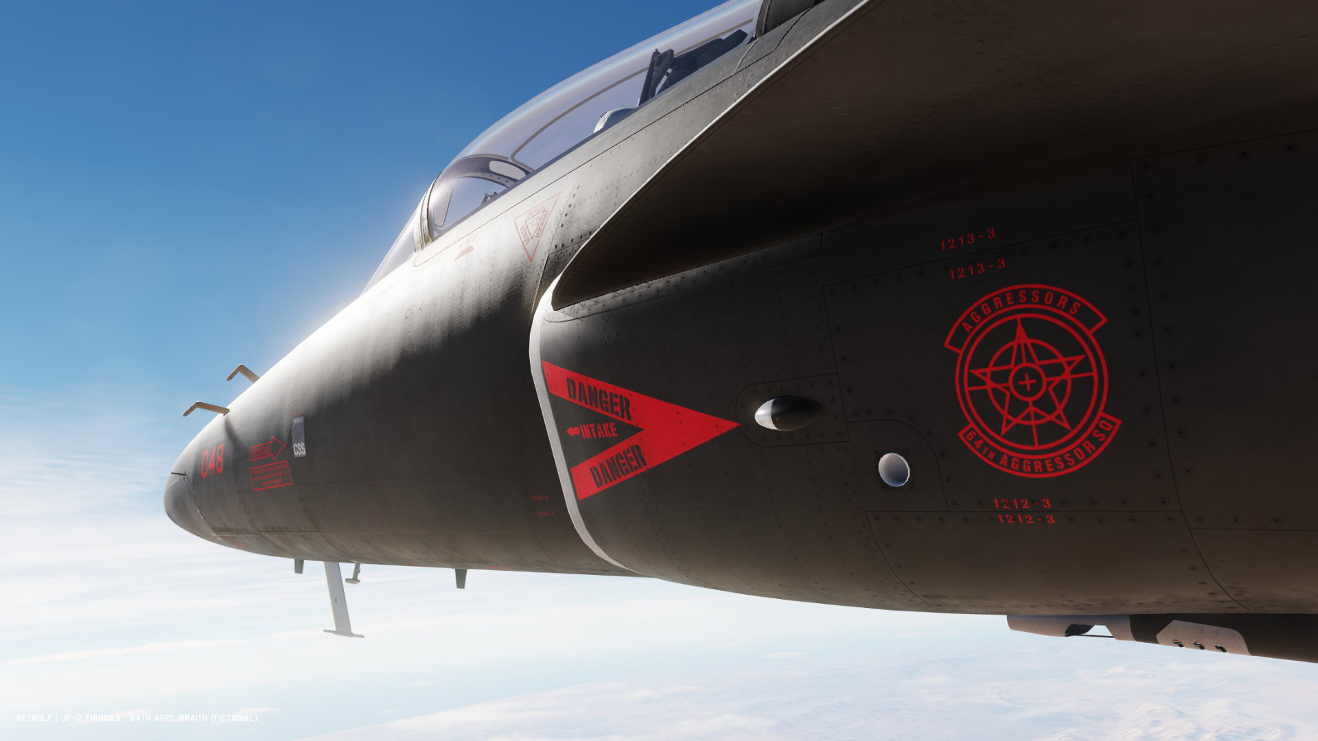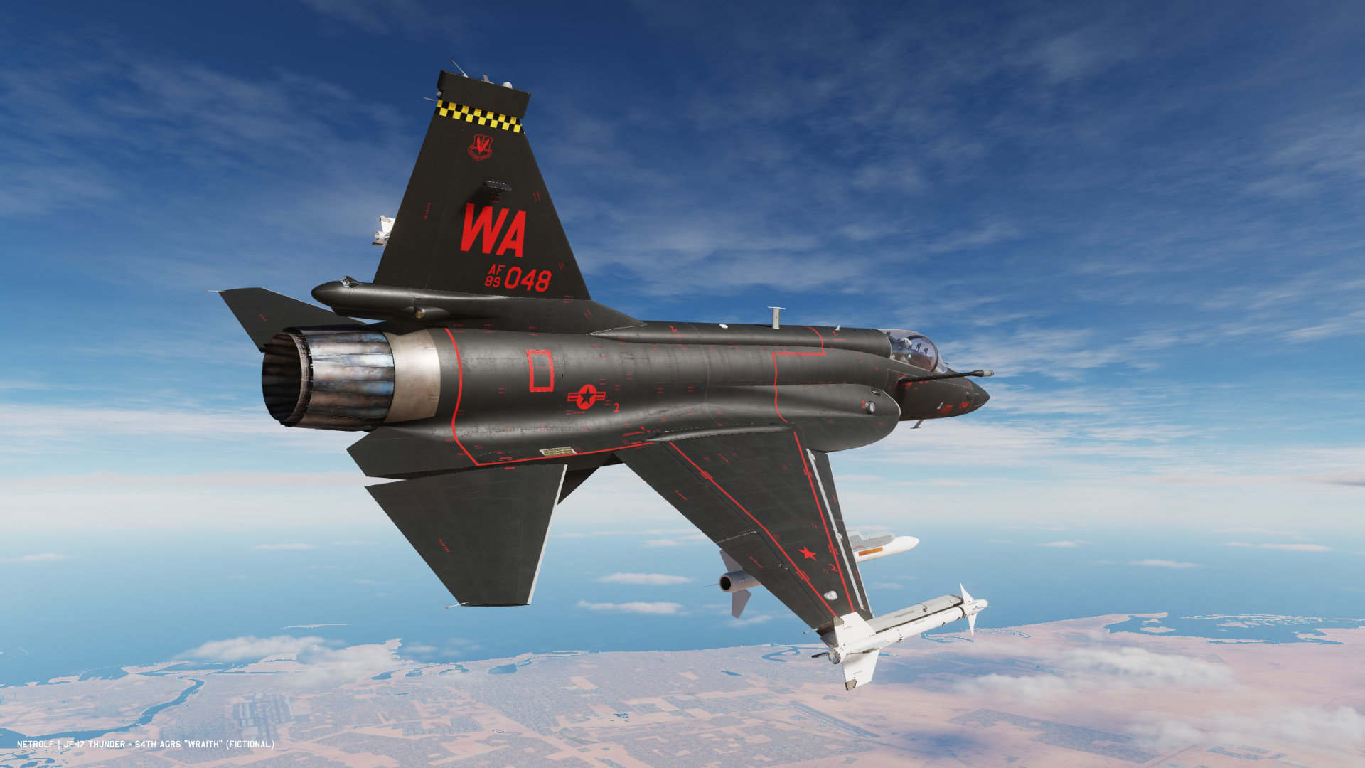 Fictional livery for the JF-17 inspired by the F-16 ‘Wraith’ Aggressors livery of the 64th Squadron. (Last Update : 18/09/2025)