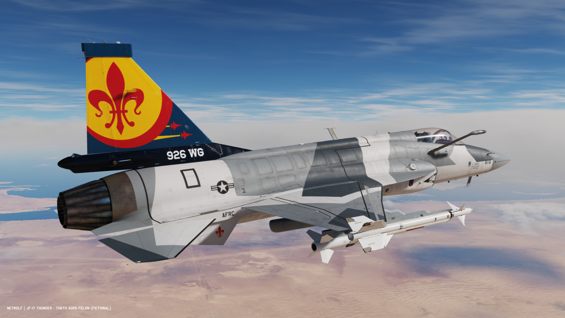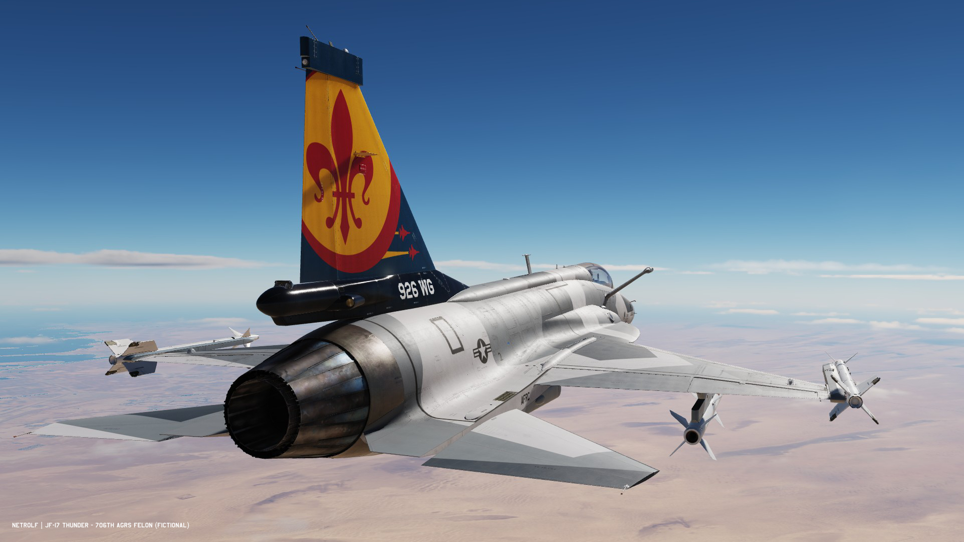 Fictional livery for the JF-17 inspired by the F-16 ‘Felon’ Aggressors livery of the 706th ‘Cajuns’ Squadron (Last Update : 28/10/2025).