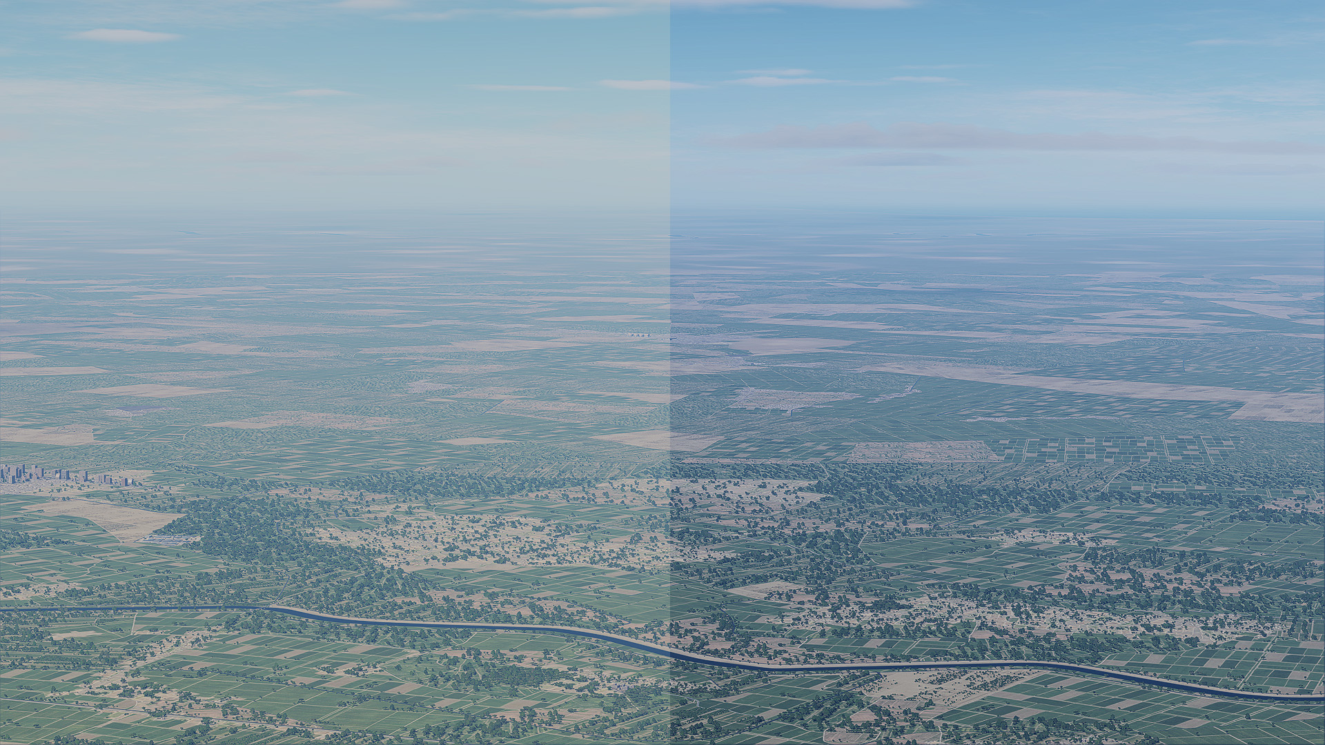 Version 3 with focus on lighting colour correction and bloom control, this helps with visibility near the horizon and removes the "smog" effect on clouds that often appear yellow not white. Plus some desaturation to offset the deeper contrast.