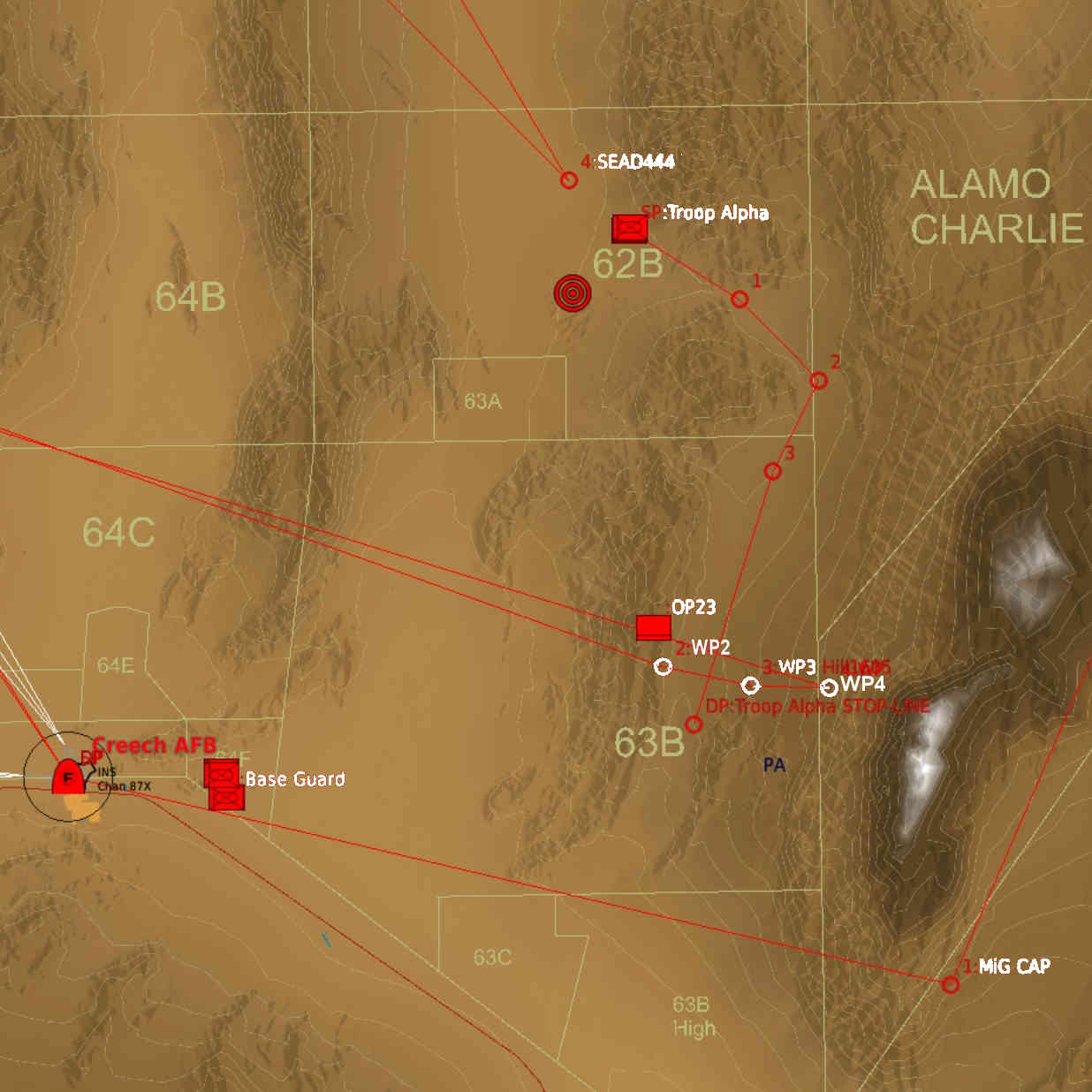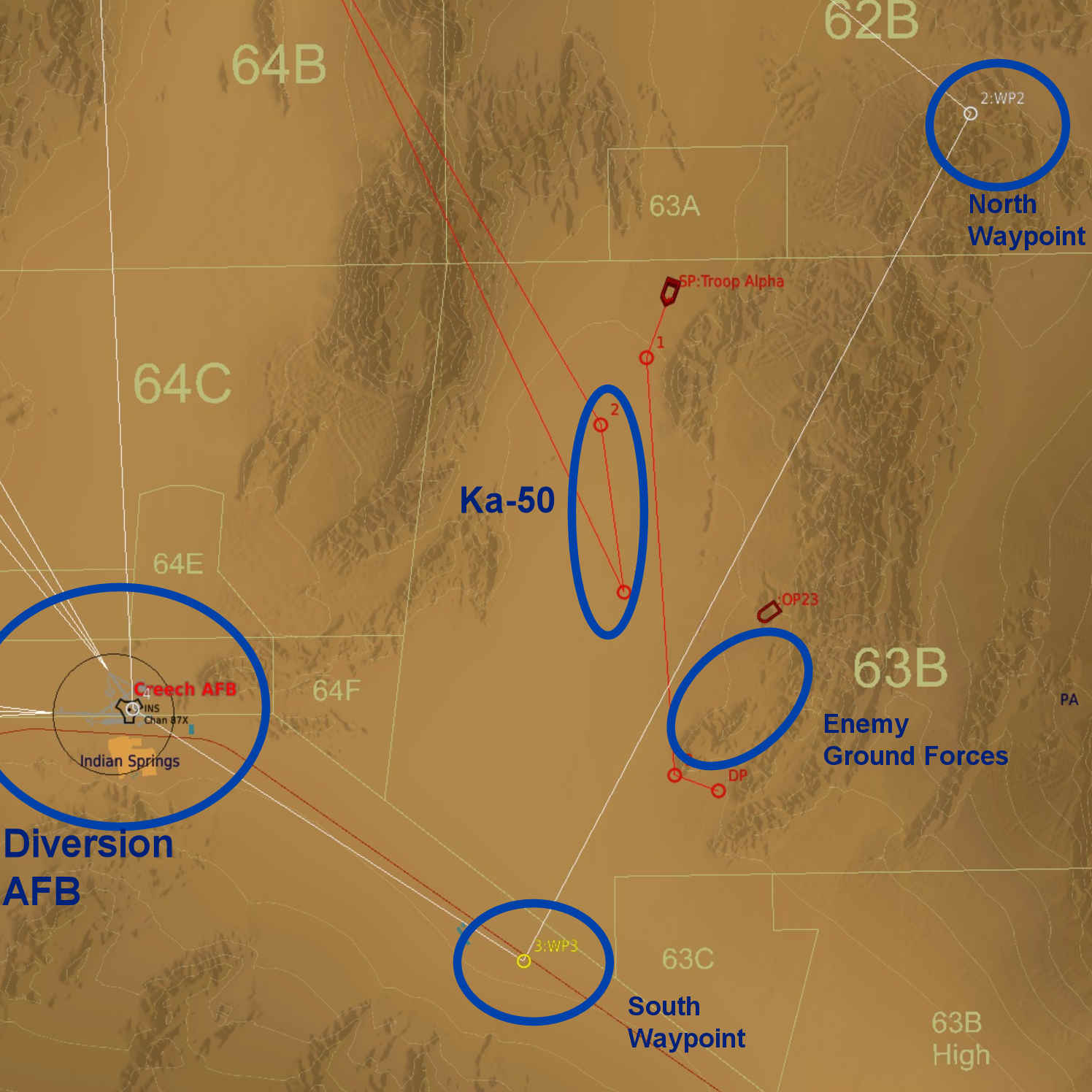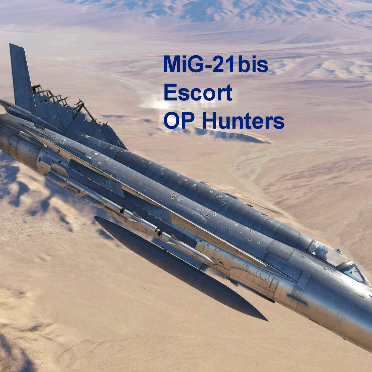 A 2 flight of MiG-21bis are escorting and shielding a flight of Black Shark Ka-50 777 who will take out observation posts that will call down fire on our ground force Troop Alpha. There are two waves of bogeys with solid replayability with varied opponents (F5E, C101, MiG-21bis) coming from different directions.