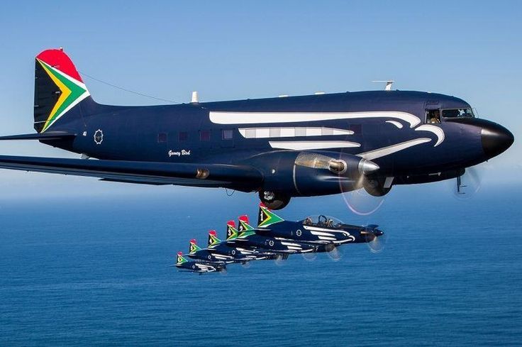South African Silver Falcon display team C-47 "Gooney Bird" used for logistics, spares & carrying personnel to air shows was painted in matching colour scheme for a short period in 2012, and some times participated in the displays