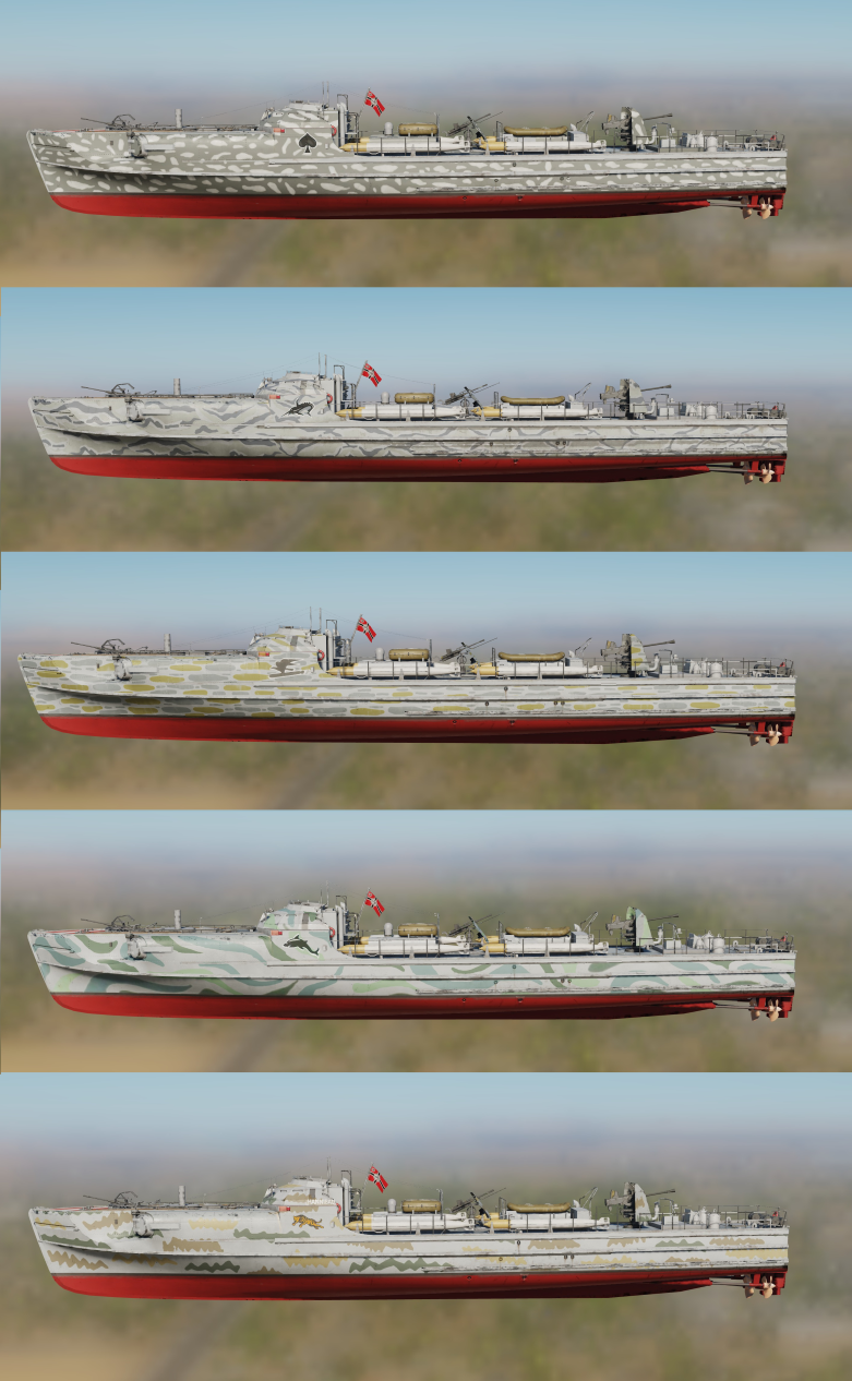 These were historically used by S-boats operating in the Mediterranean Sea & Black Sea (used by the Italian Navy - Regia Marina), but again it looks cool so have added to these liveries.
