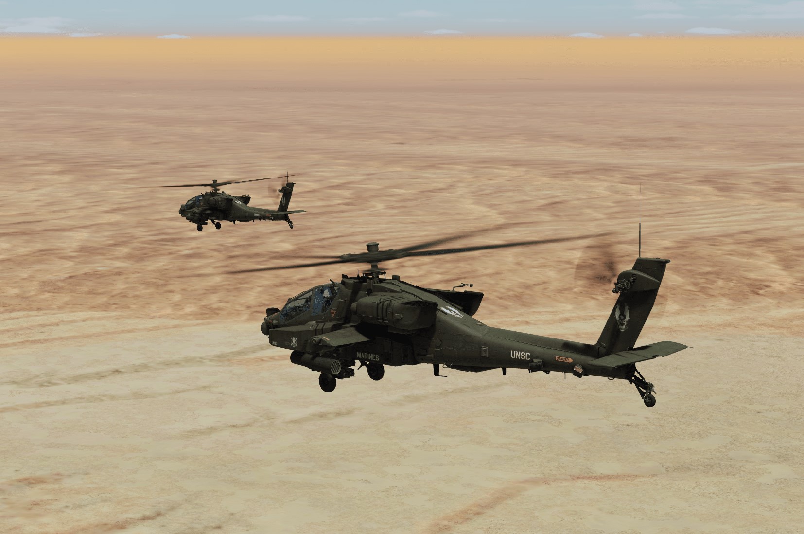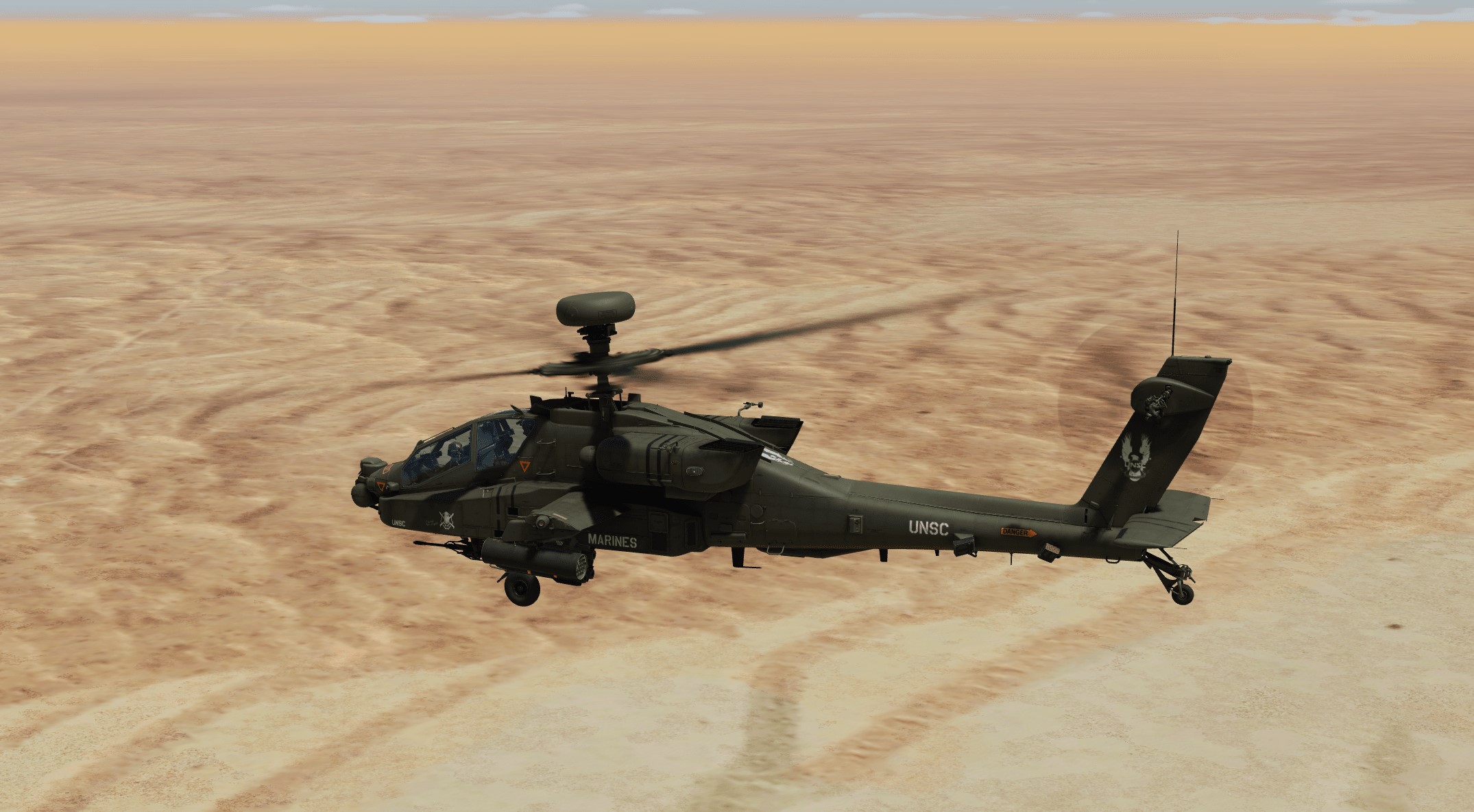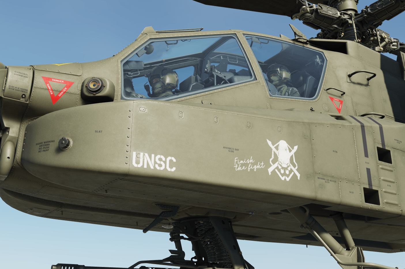 UNSC Pelican's inspired livery for the AH-64D Apache. All textures are 4k with custom HaveGlass-like finish.