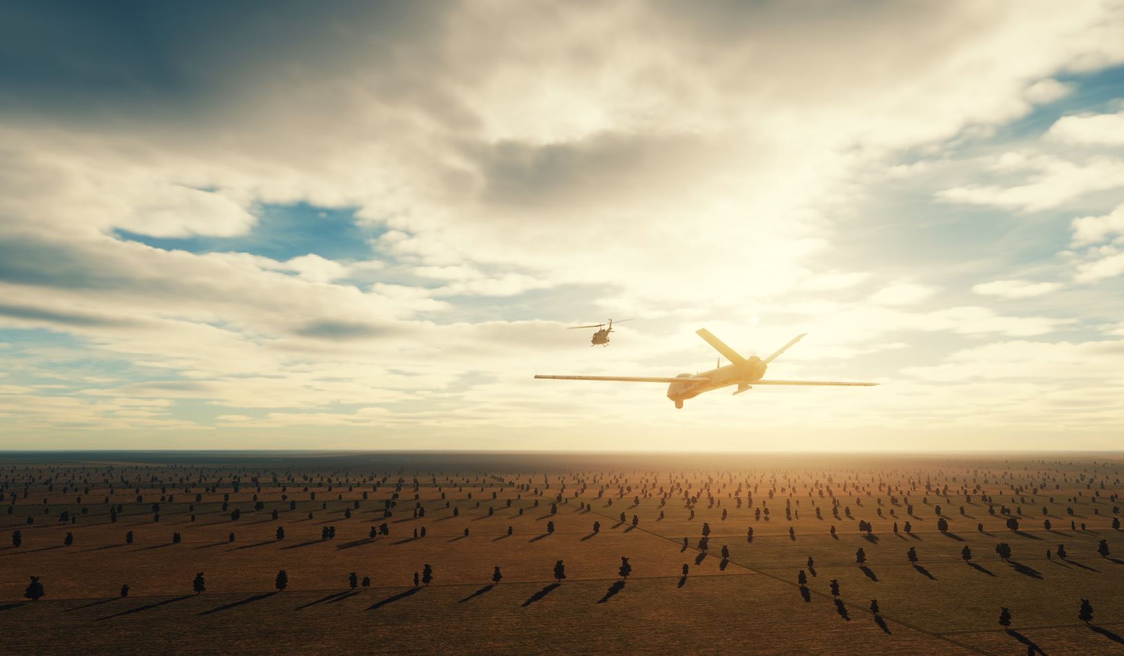 Jump into a UH1 gunner seat (press 3 before hitting fly) and fight off the drone swarm heading to attack a target.