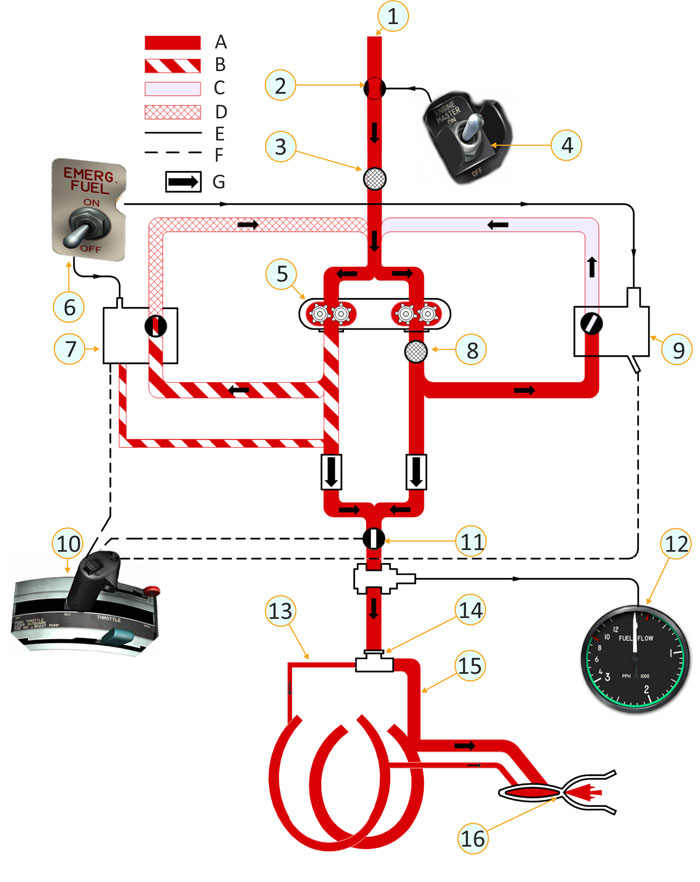 Fuel consumption to the engine is governed by the fuel management system (engine fuel control system) consisting of the main fuel control system and emergency (back-up) fuel control system. The emergency system is used to maintain the fuel flow to the engine in case of a failure of the main system.