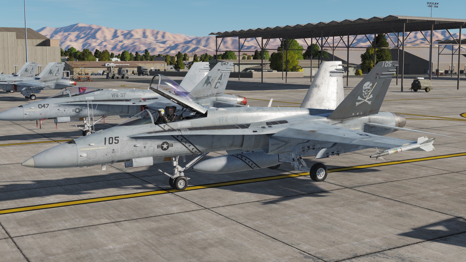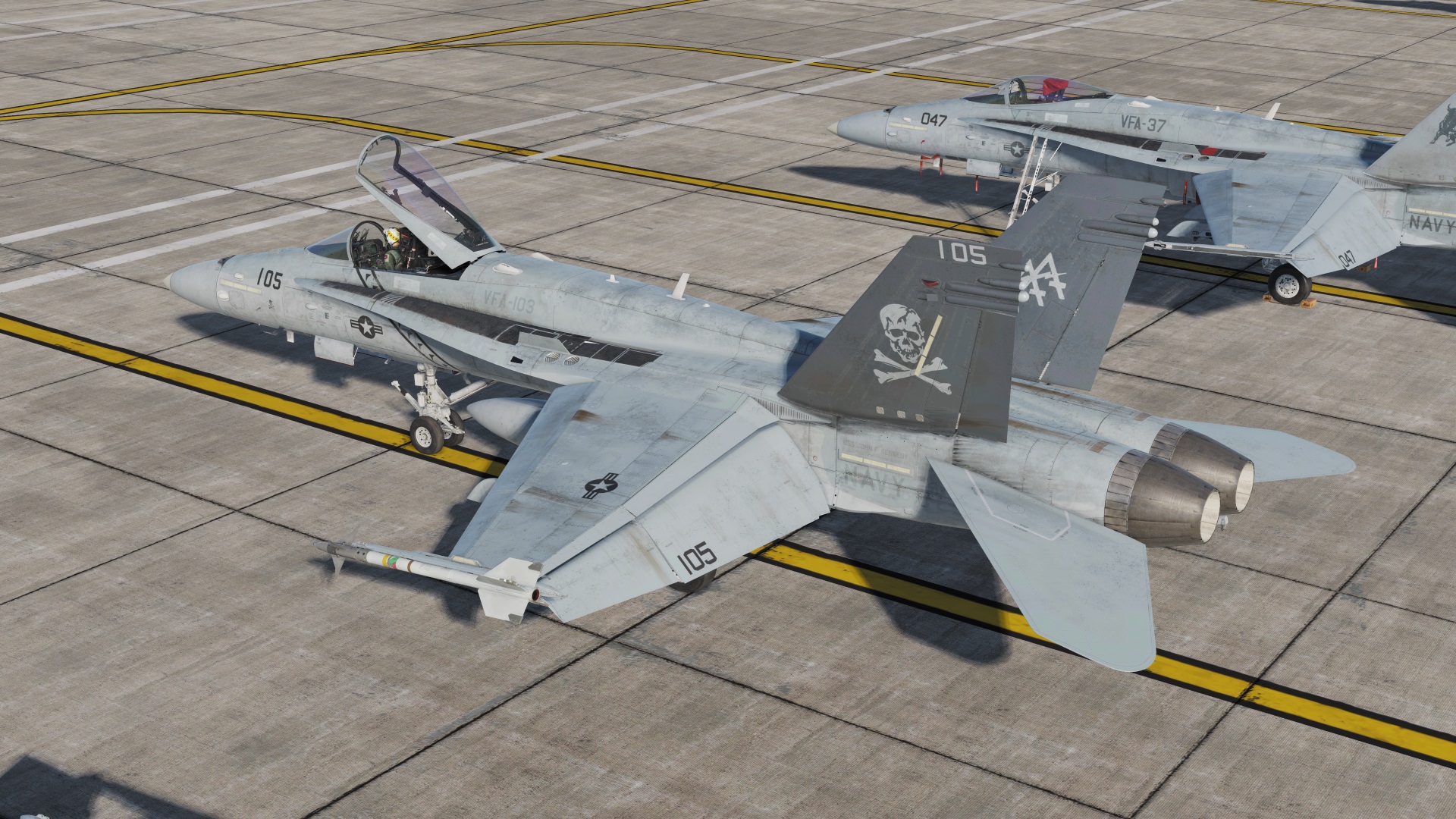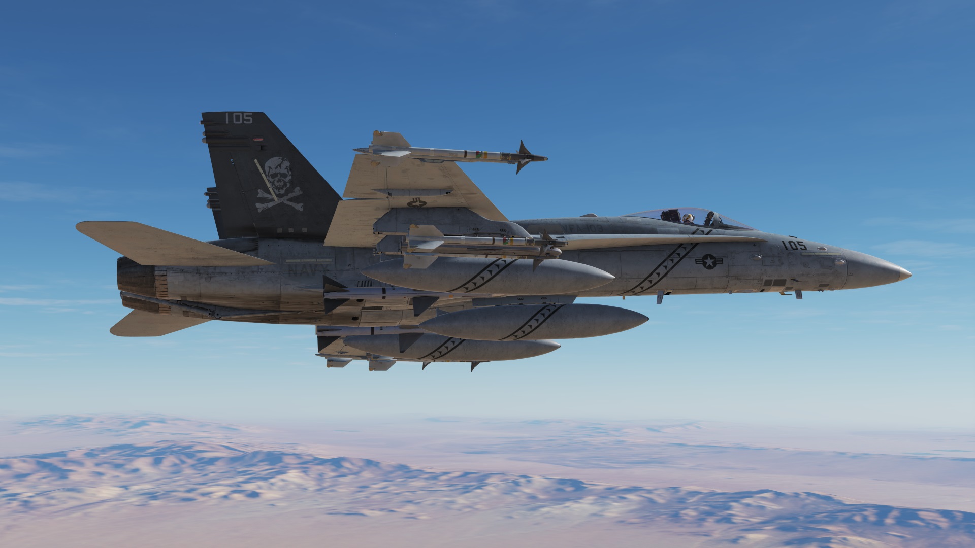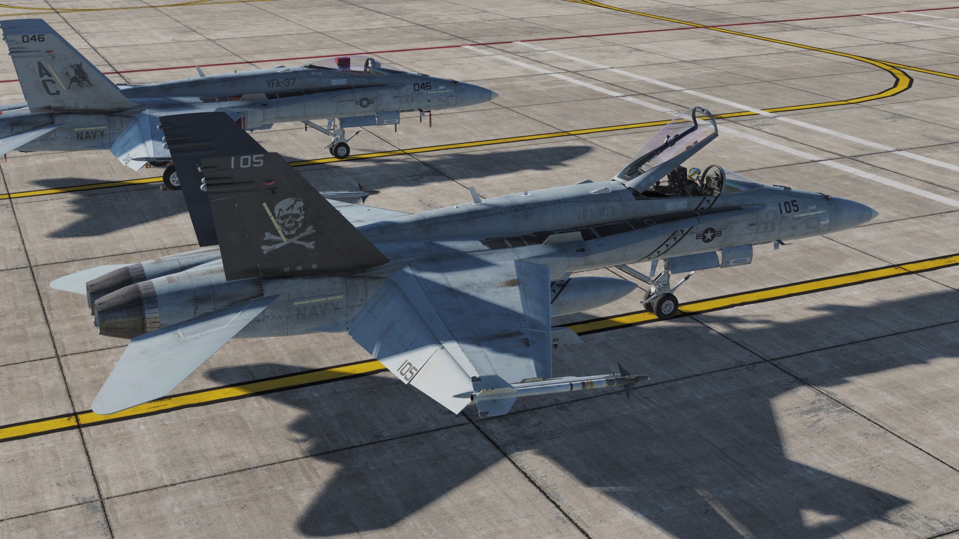 This livery is an adaptation of VFA-103 "Jolly Rogers" 2004 'Last Tomcat Cruise' livery for the F/A-18C.  Should play very nicely with SkateZilla's terrific Jolly Rogers skin pack for those of you flying together online/making missions.  A personal favorite of mine as far as Tomcat paint jobs go.