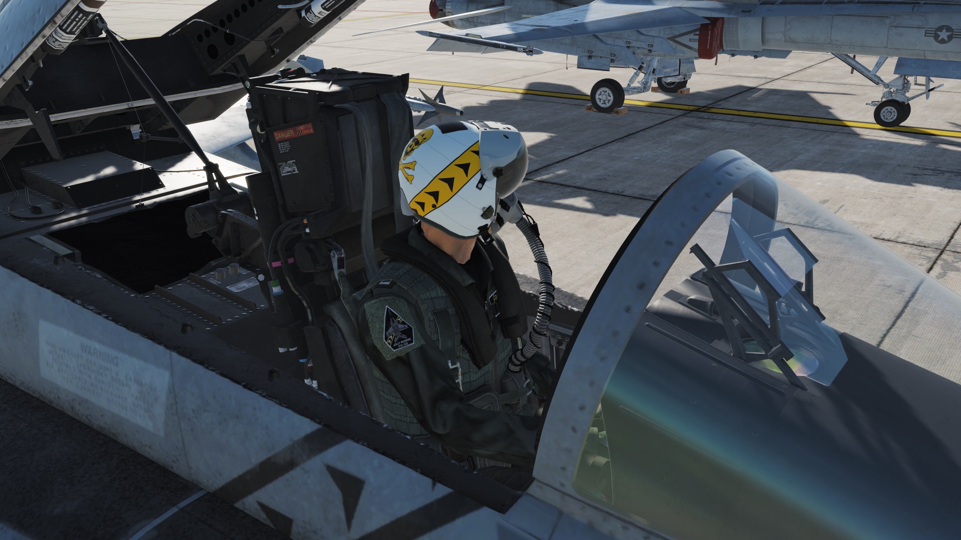 -Custom squadron textures for the pilot including a custom helmet, custom patches (with a TOPGUN shoulder patch), brown boots and a black t shirt.