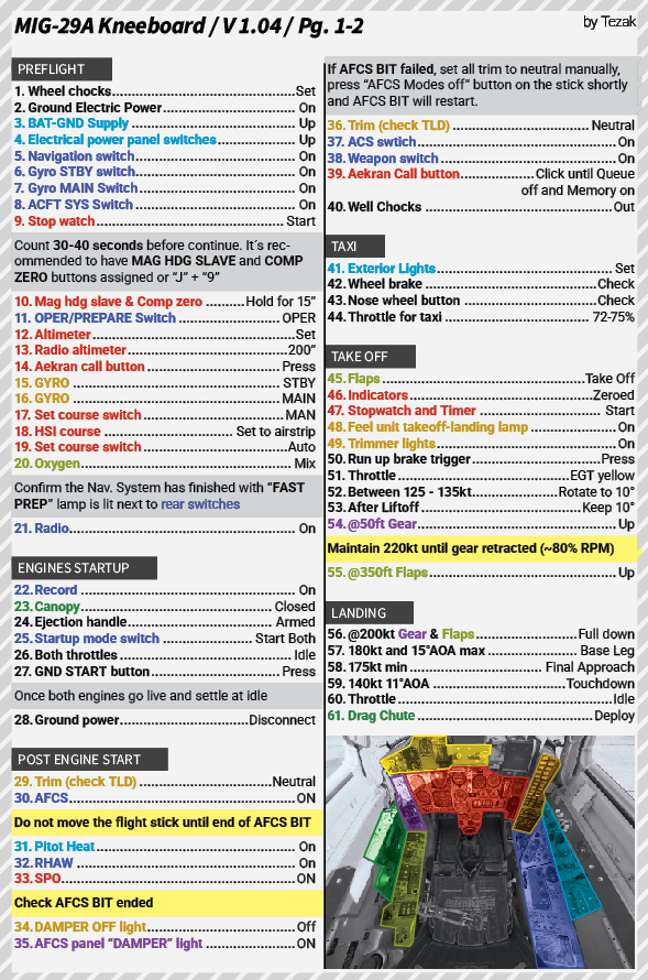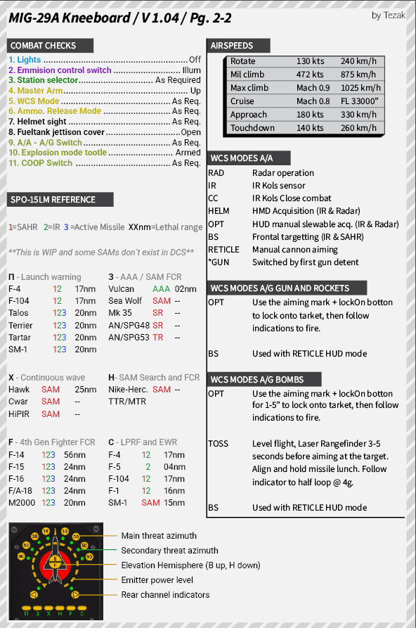 Kneeboards Covering startup, fence in, radar modes and SPO 15