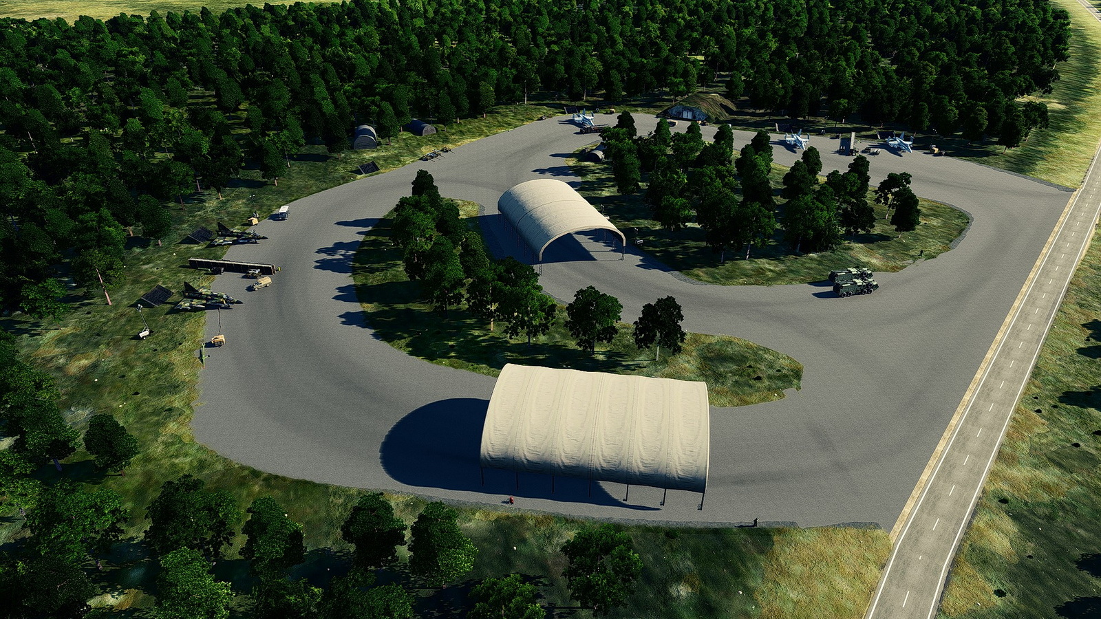 Airbase populated with Statics and ambient units.