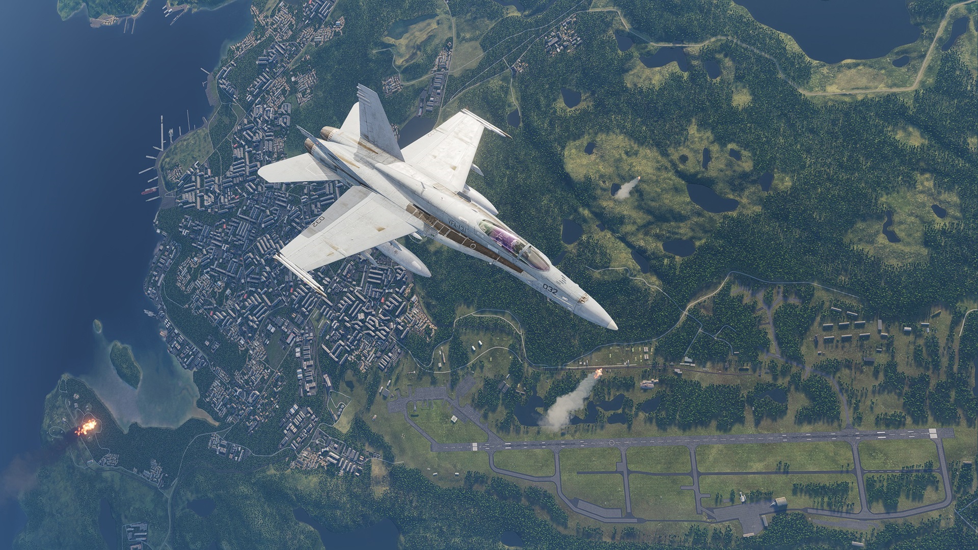 A recreation of the Jane's F/A-18 "First Look" mission, placed in approximately the same location, with the same MiG-29 drone ahead and the factory at waypoint two.