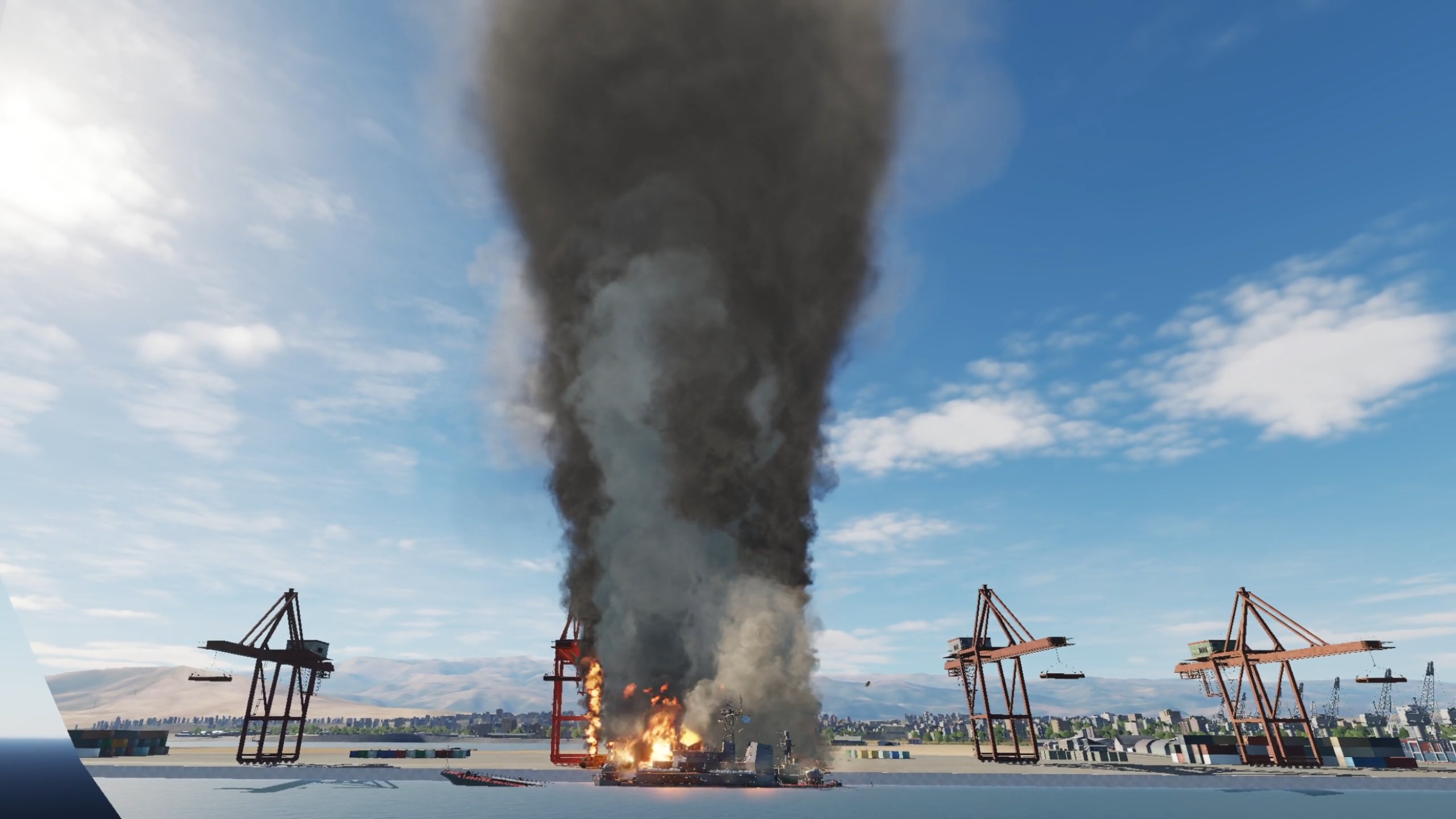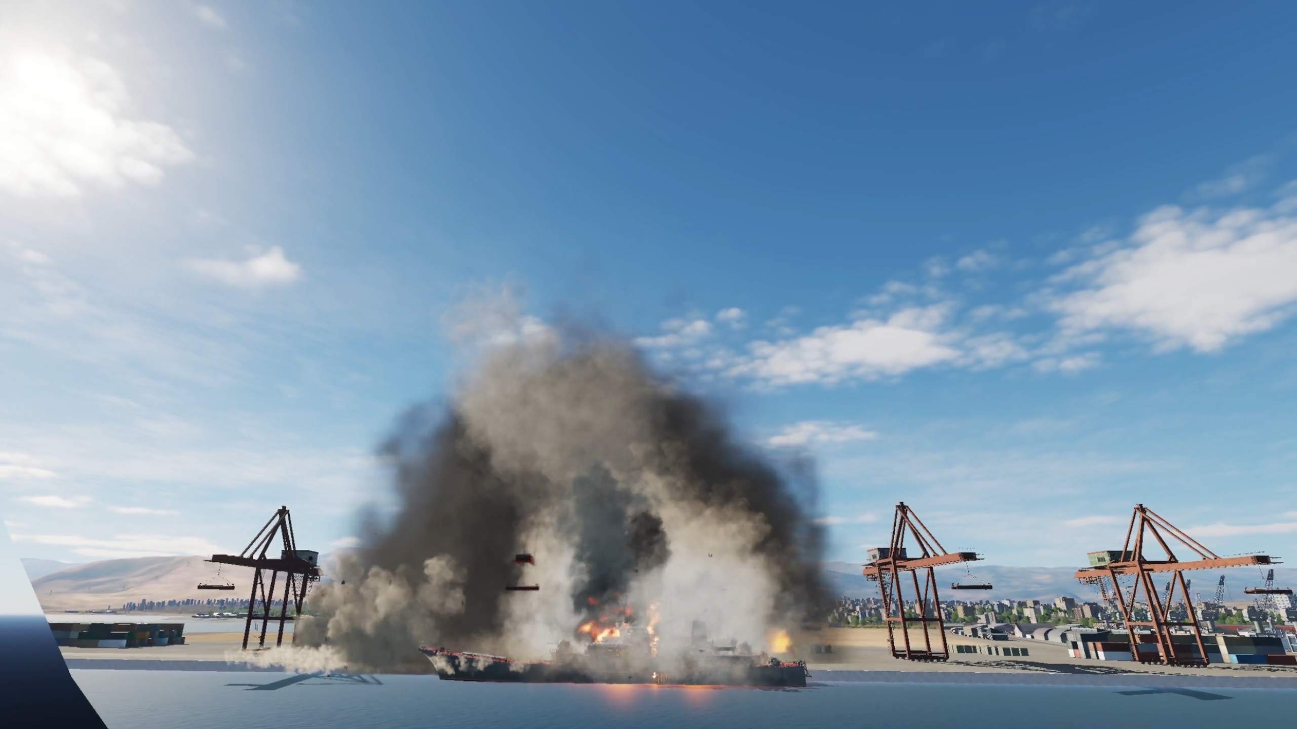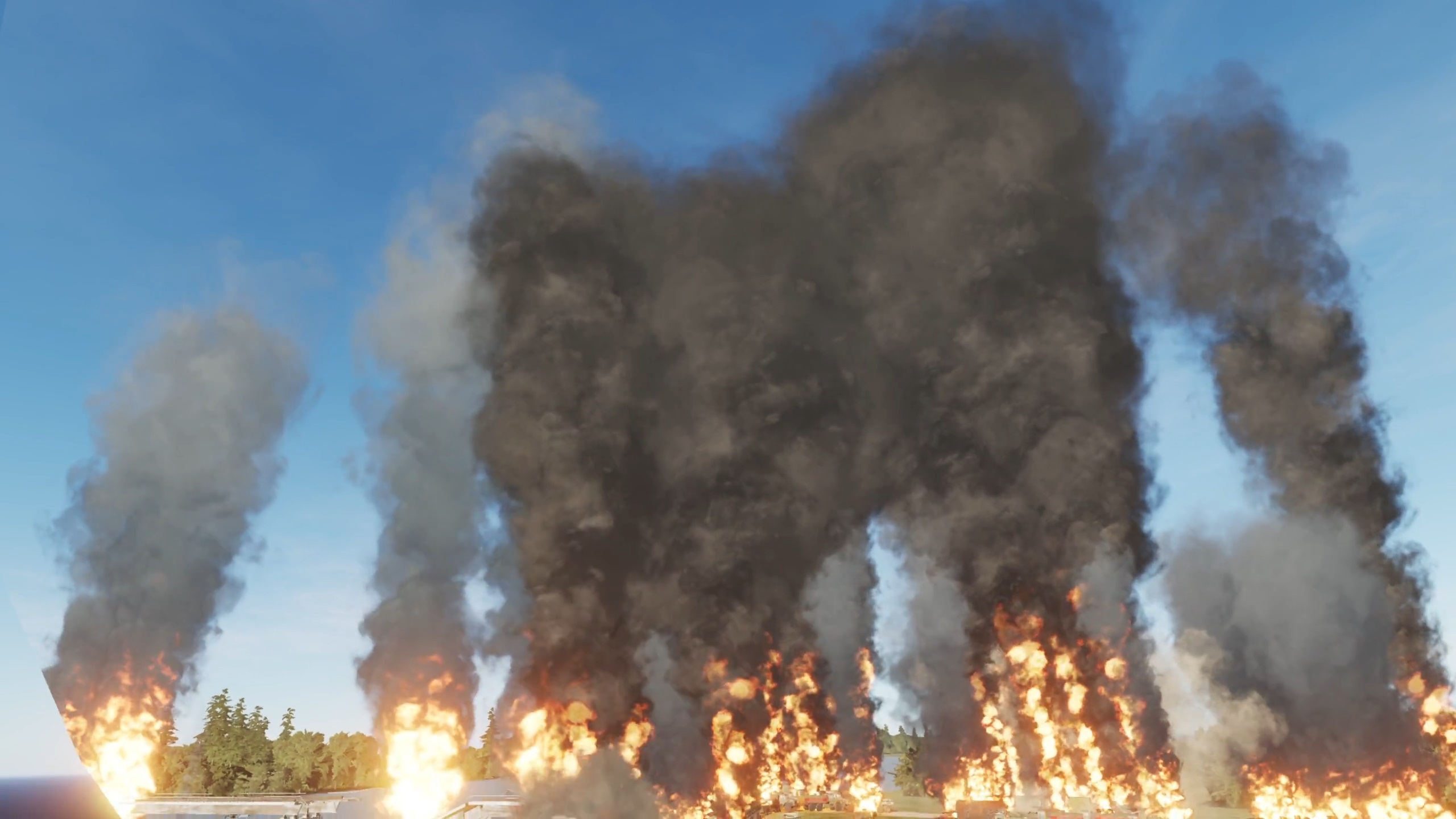 It’s a 2.5km (1.5 mile) oil refinery you can fly through while it blows up. I put it on an airbase and timed 2 Lancers to do a runway bombing over your head while you're flying through.