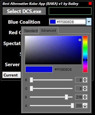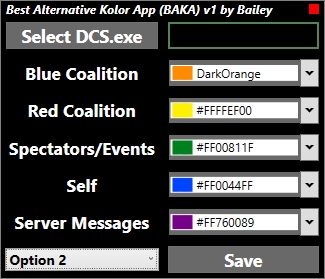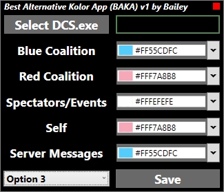 Change the color of Multiplayer chat. The five categories are "Blue Coalition", "Red Coalition", "Spectator/Events", "Self", and "Server Messages". BAKA passes MP Integrity Check.