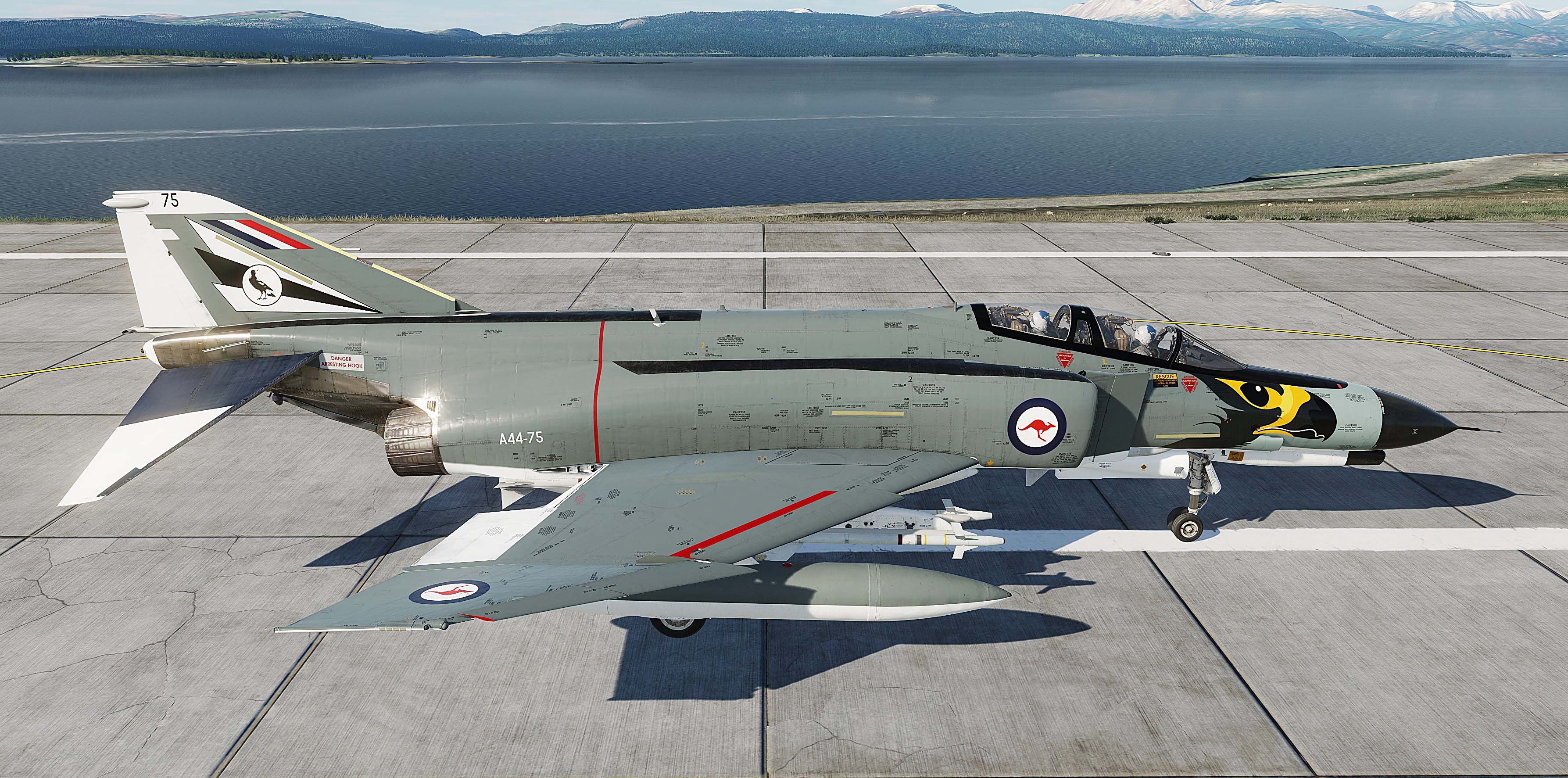 F-4E, RAAF, Dark Grey with Hawk Nose (Fictional), 2 OCU, 3 Sqn, 75 Sqn, 76 Sqn, & 77 Sqn -> https://www.digitalcombatsimulator.com/en/files/3347084/
