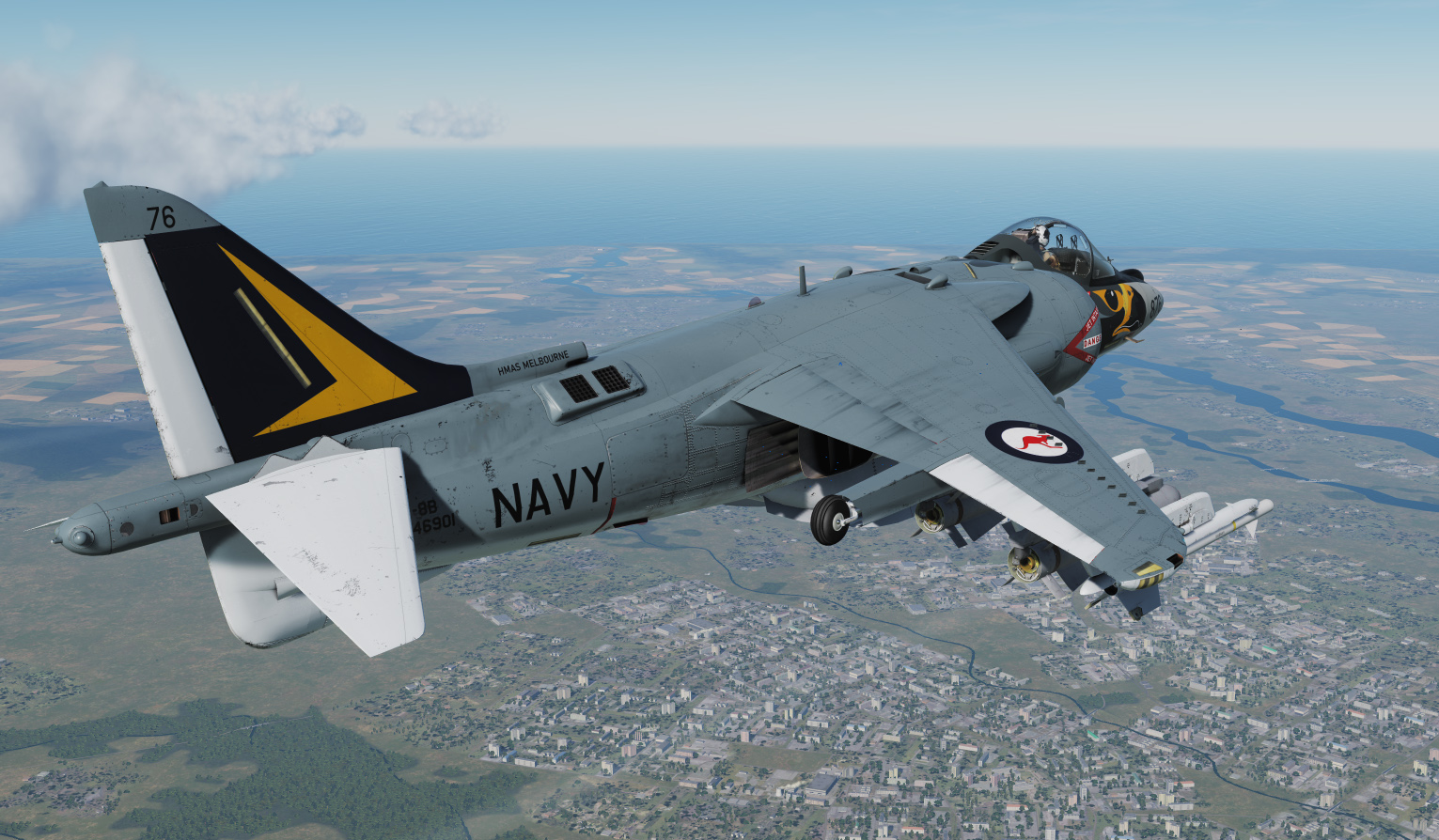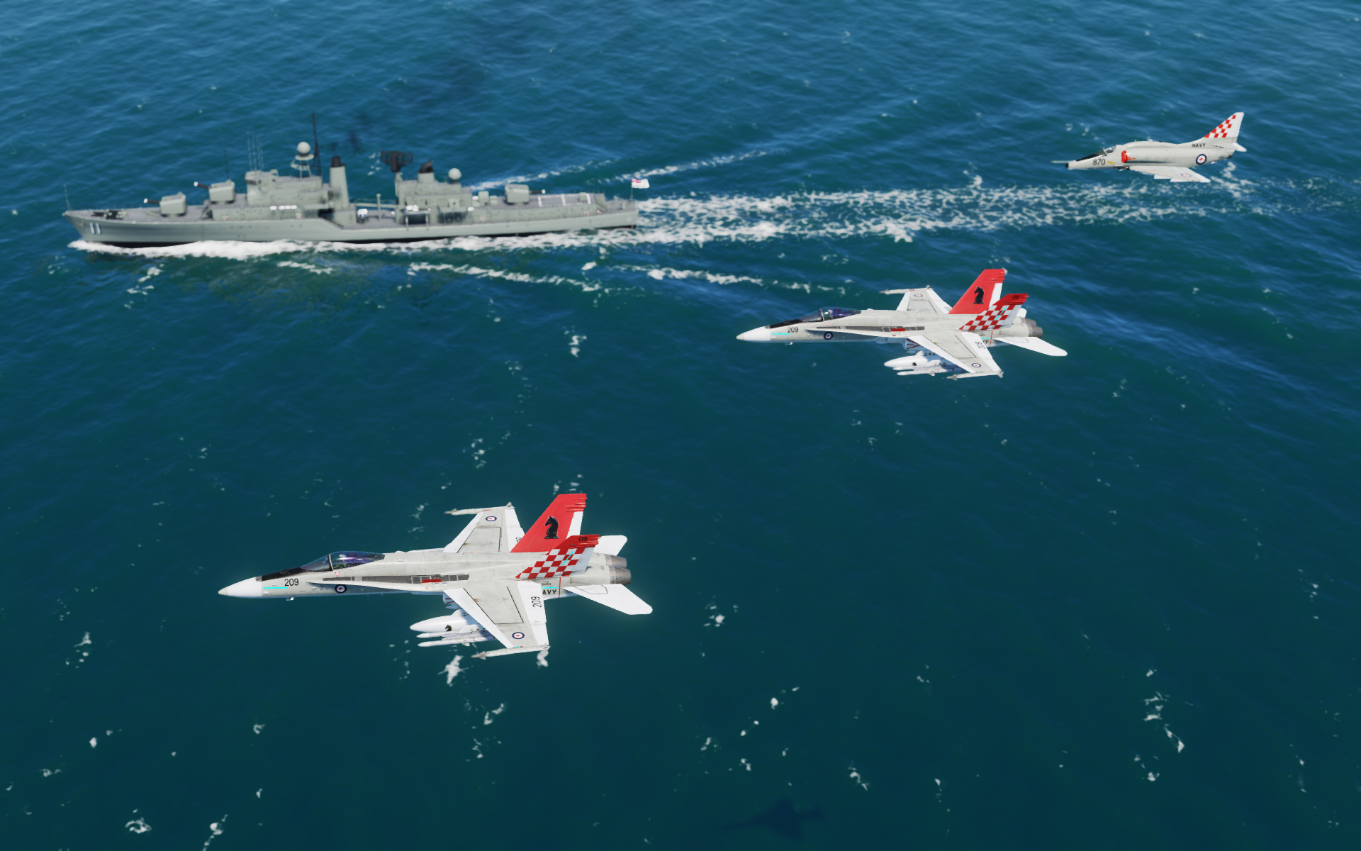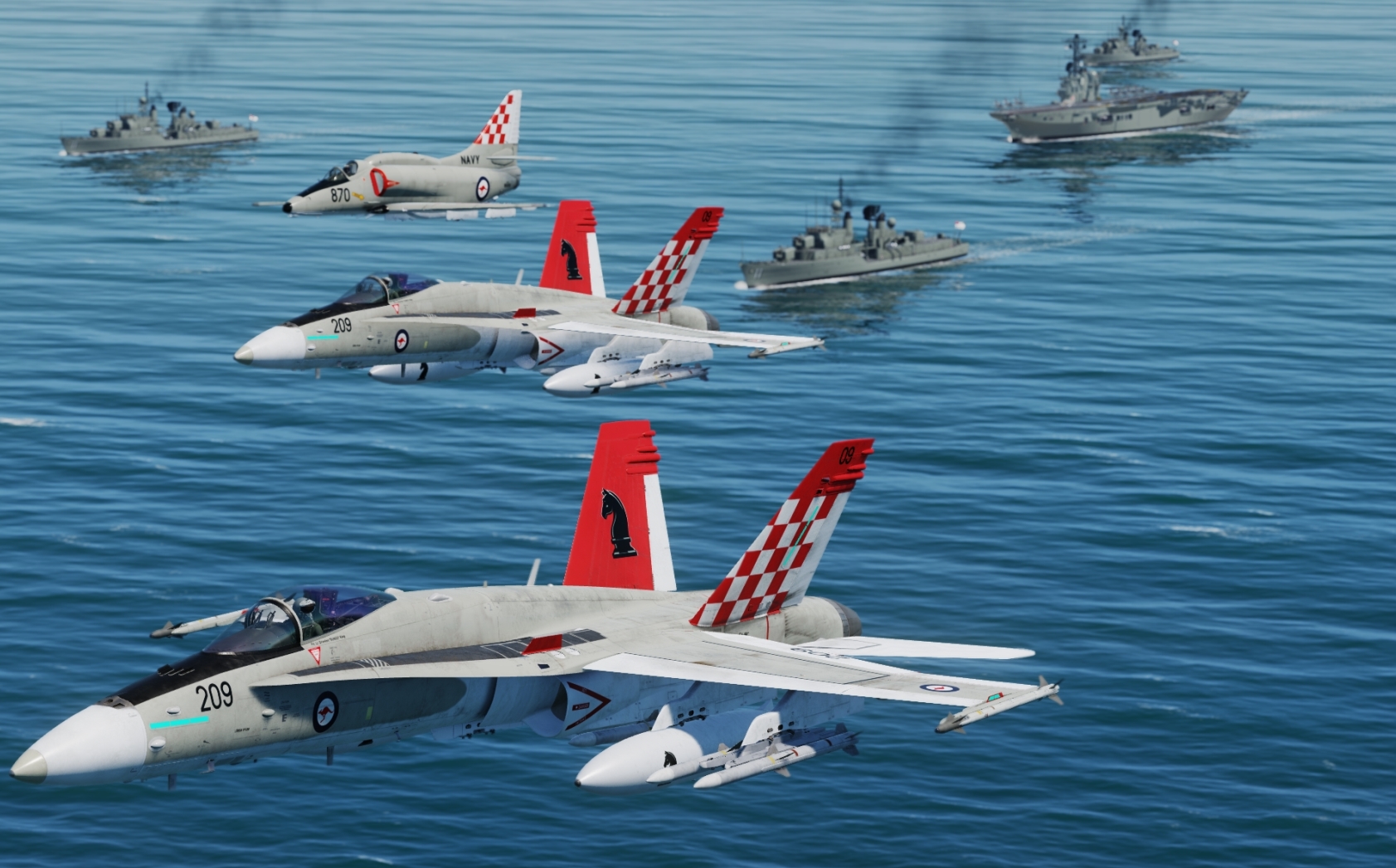 Fictional Royal Australian Navy livery based on the Gull Grey/White scheme of the RAN A4G Skyhawks operating from HMAS Melbourne in the 1970s.