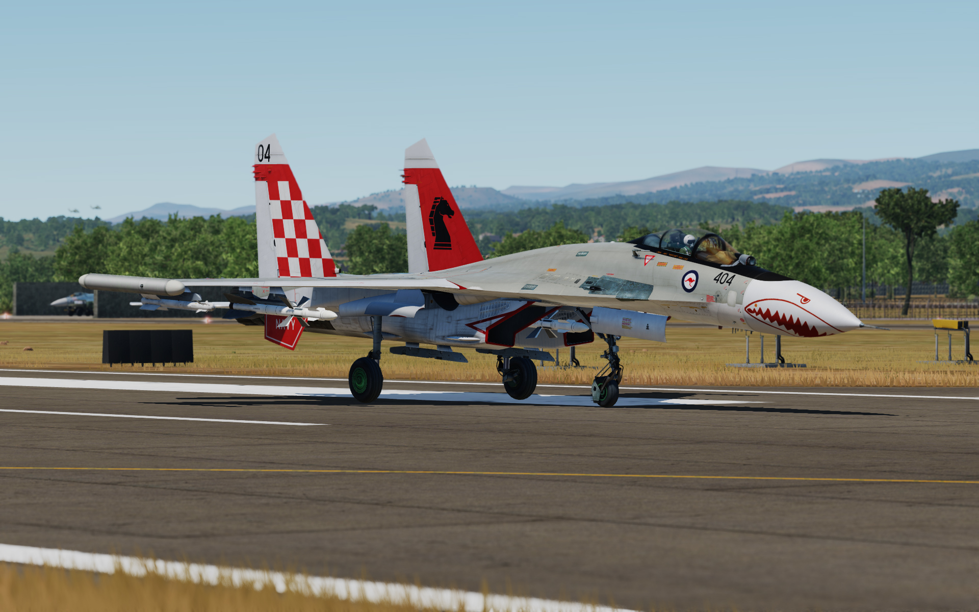 In the spirit of my other RAN fictional schemes, I present the Su-27 in RAN VF-805 colour scheme.  Created so that a mate of mine who flies Russian aircraft could fly with the same 'uniform' as the rest of us.