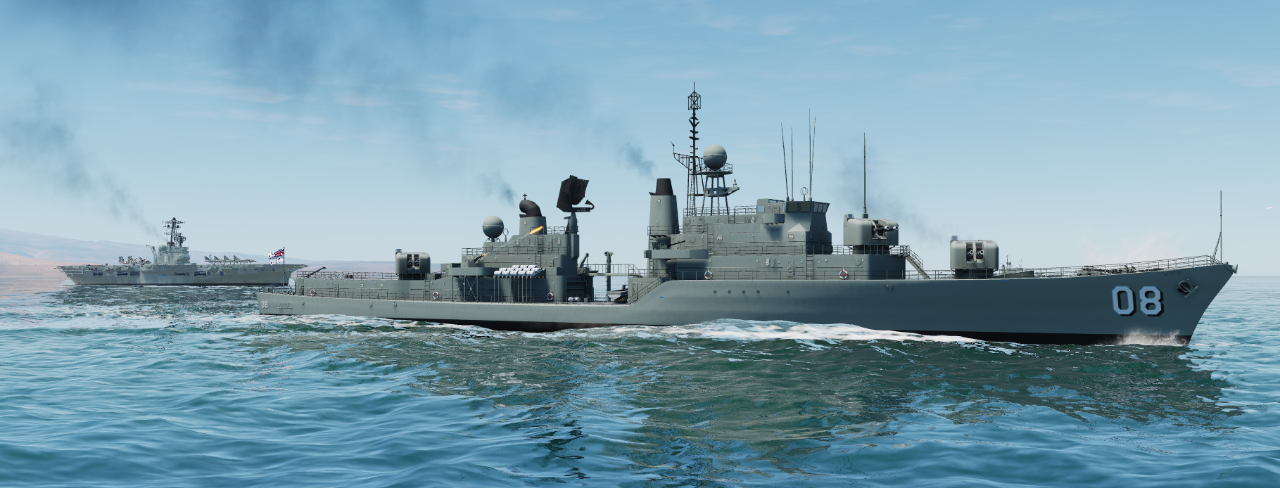 HMAS Voyager not included as she was bisected by the HMAS Melbourne in 1964 and was resting on the bottom of the Tasman Sea when these 2 ships had their mid-life refits in 1970 (as modeled here).