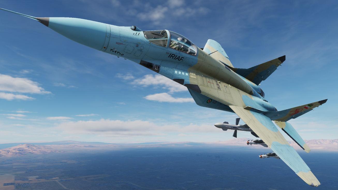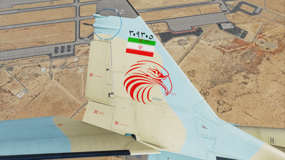 Replica skin of the IRIAF Mig-29UB done on the Mig-29S. Has two-digit dynamic board numbers in Arabic on the tips of the vertical stabilizers. OvGME ready, IC Compliant.