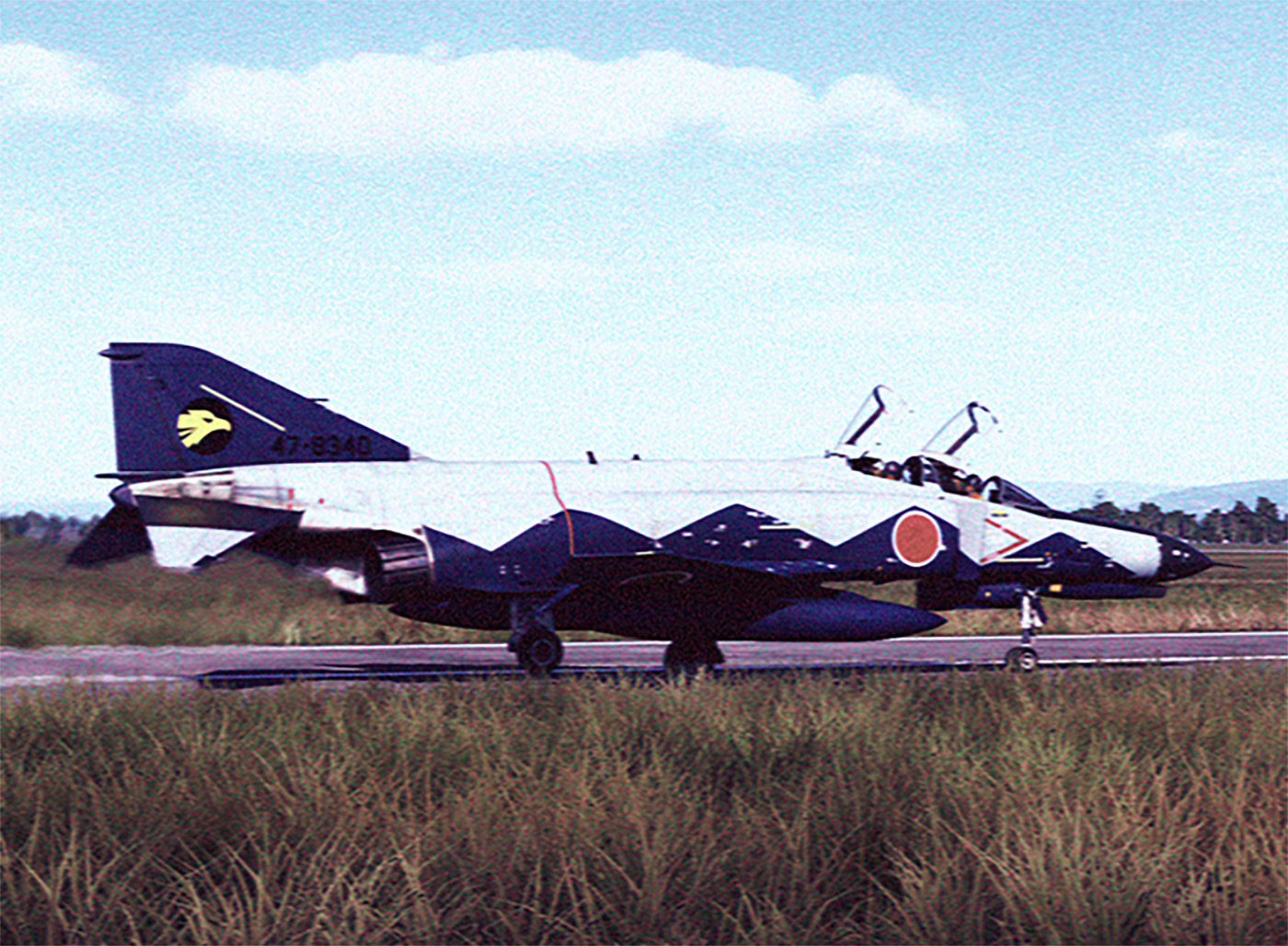 This is a 1:1 recreation of the "Phantom Burai" livery on F-4EJ Kai #77-8402 from the 302nd squadron with the red triangles and the corrosion control weathering that is prominent on many JASDF aircraft.