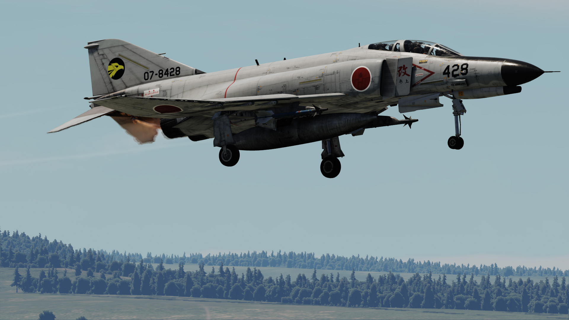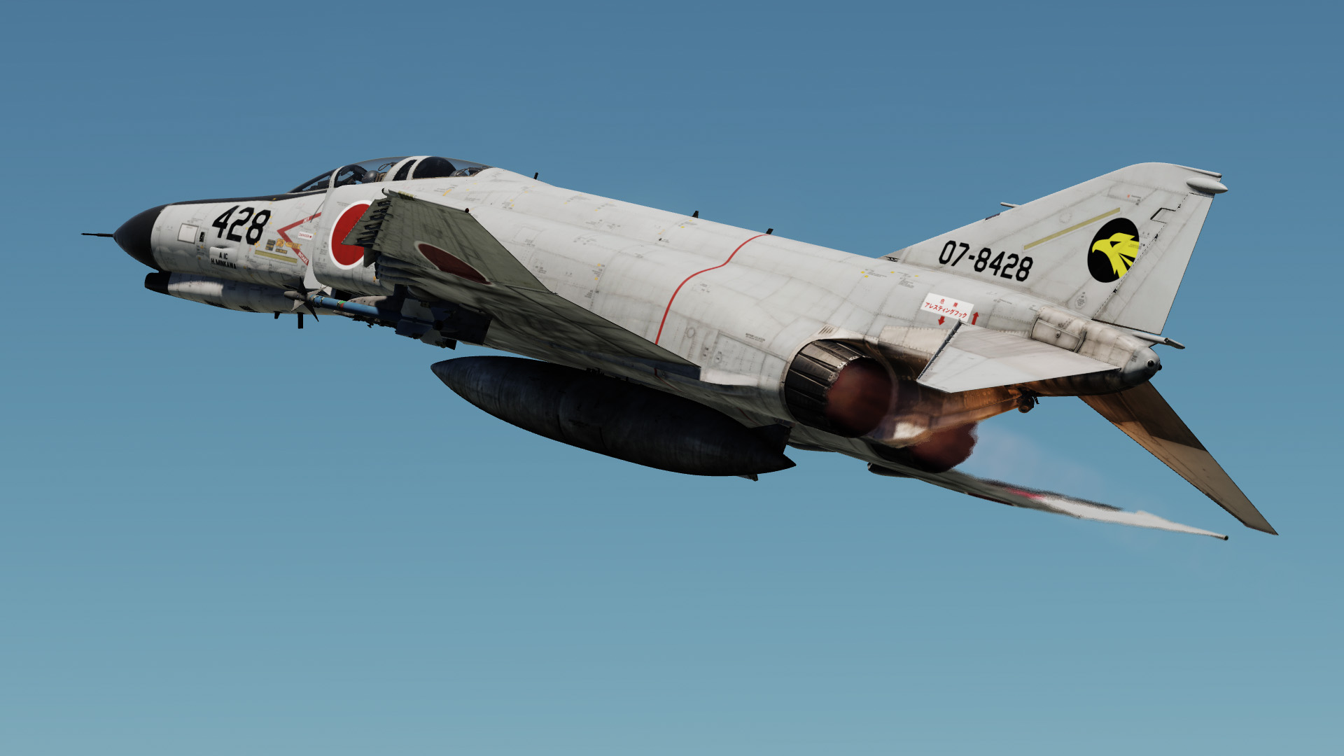 This is a livery depicting the early scheme F-4EJ Kai serial #07-8428 with 306th squadron. This livery features a few extra stencils such as the kanji on the intake which says "Calling on improvement".