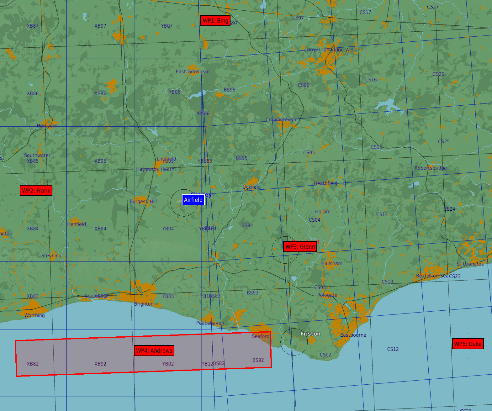 5 Ranges to choose from, Bing, Frank, Glenn, Andrews and Duke for Ground Attack, Air to Air, Anti Ship, Airbase & Convoy attack.