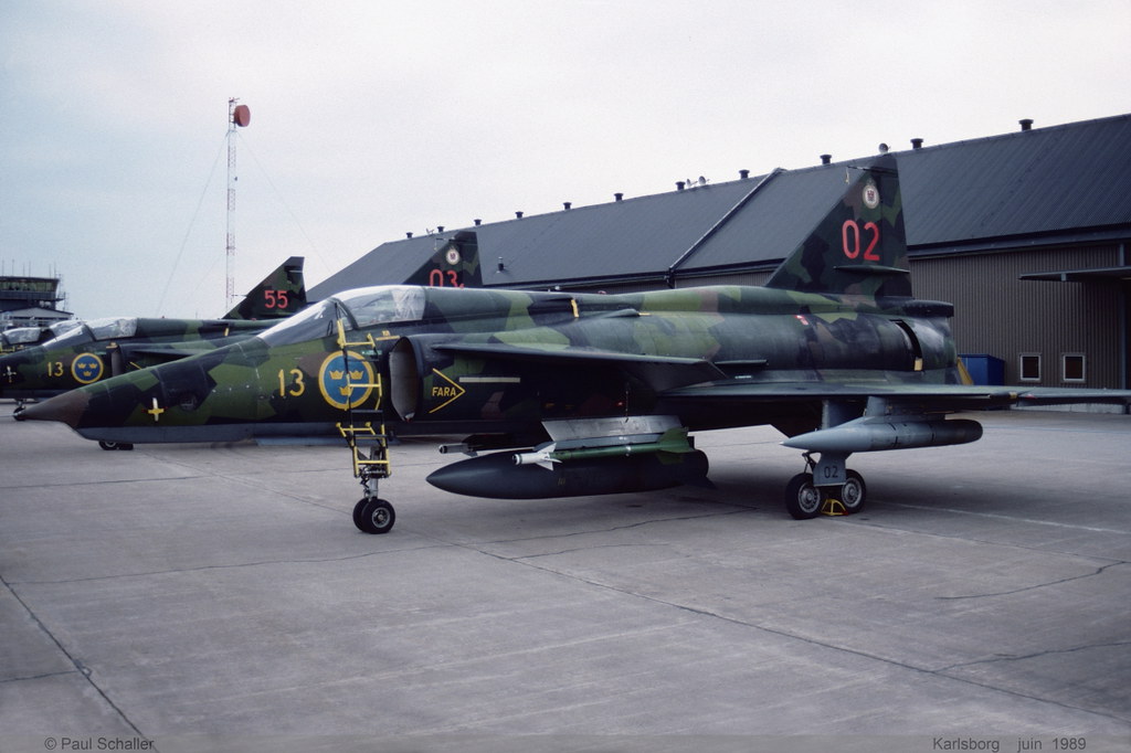 4 skins belonging to the 15th flying wing, Swedish air force, based in Söderhamn. Tail numbers 09, 26, 31, and 47. All four aircraft recieved the AJS mod and flew with the wing in the 1990's. Number 31 is currently flying in a bare metal livery with tail number 52. Number 26's cockpit was turned into a simulator. Number 09 sits outside at the Söderhamn aviation museum. Number 47 was scrapped.