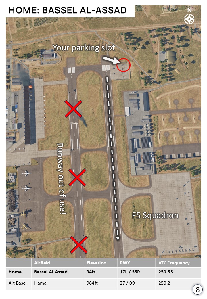 Earlier today, after months of small-scale conflicts, Iraqi Forces launched a series of surprise attacks on almost every active Iranian airfield. Iraqi ground troops have begun an offensive along the border with Iran and are making advances into Iranian territory. The Iraqi forces are unaware that their air attacks have done little long-term damage to the IIRAF airfields. After a few hours of hurried maintenance, the Iranian F-5E Tigers based at Bassel Al-Assad are ready to strike back!