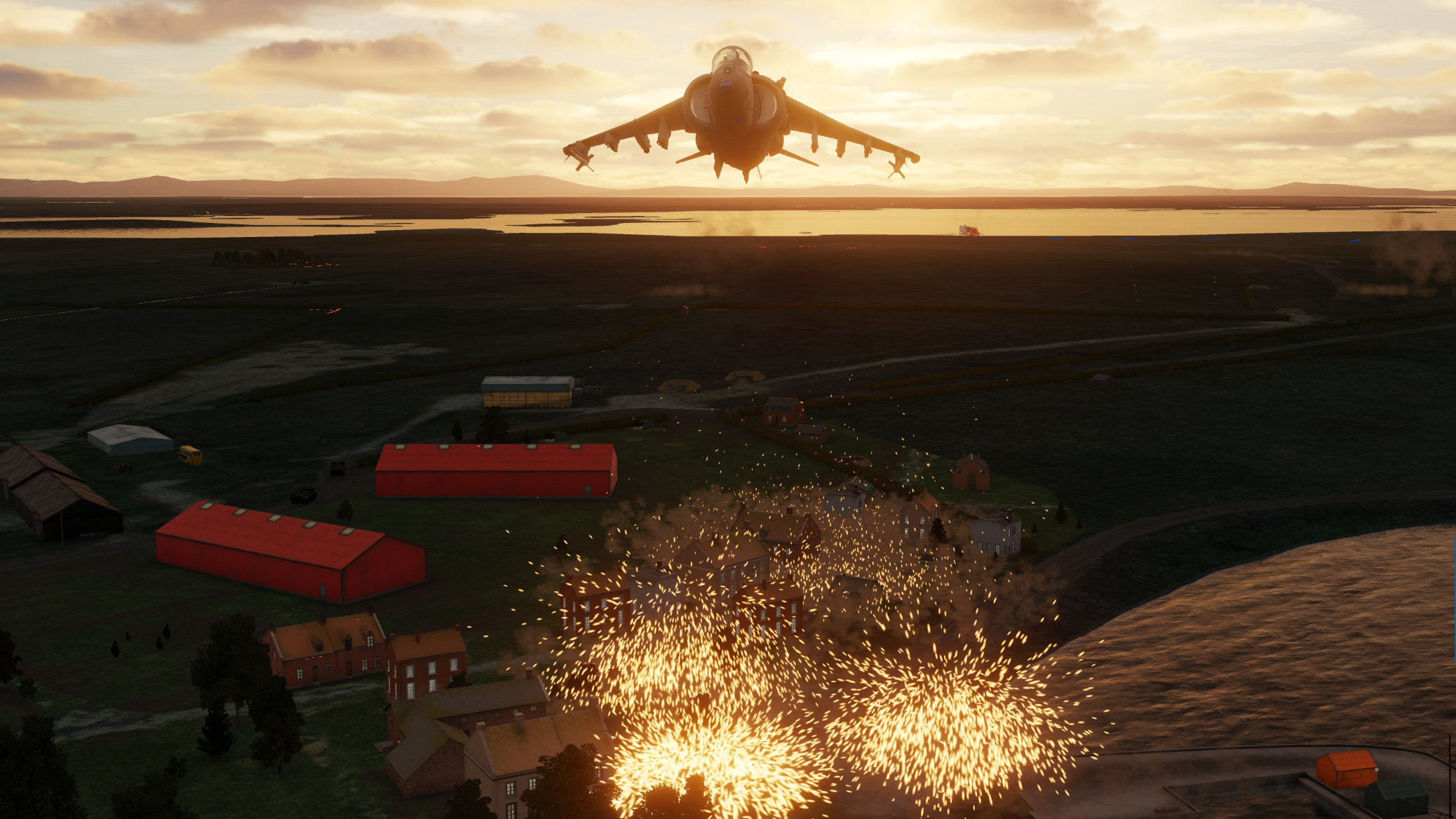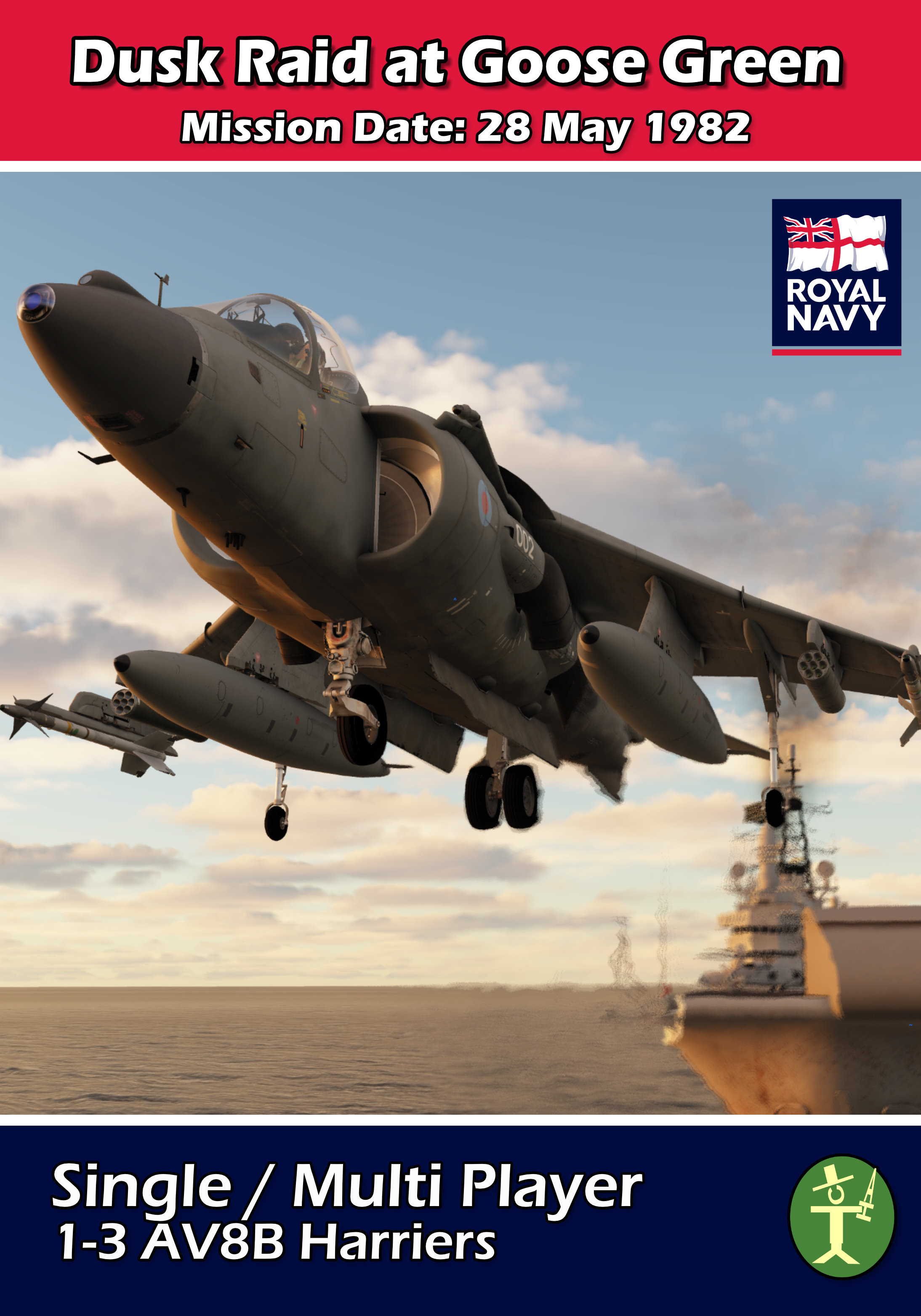 28 May 1982. Operation Sutton - the ground offensive to retake the Falkland Islands has been running for 15 hours. You are part of VIXEN, a flight of up to 4 Sea Harriers stationed onboard HMS Hermes. You have been at 5 minutes readiness to scramble the whole day, but the terrible weather conditions have made flying impossible - much to yours and the ground troops frustration. An urgent call has come in from the 2nd Parachute Regiment (2 PARA). They are attacking Goose Green and have come under intense artillery fire. In addition, the Argentine defenders are using their 20mm and 35mm air defence guns as heavy machine guns. The Paras are pinned down and need air support now! Fortunately, the weather has just changed, and, in a risky move, HMS Hermes has been brought to within 70nm of East Falklands to reduce your flight time.