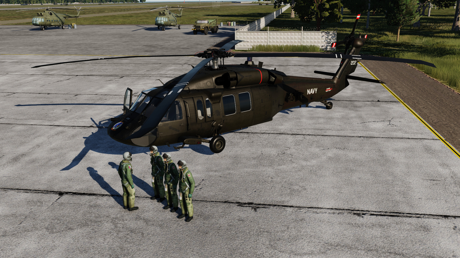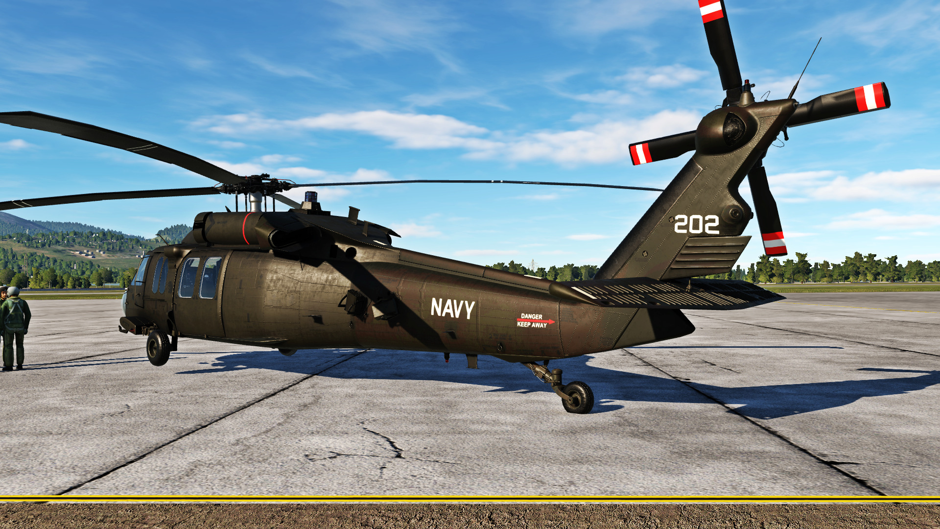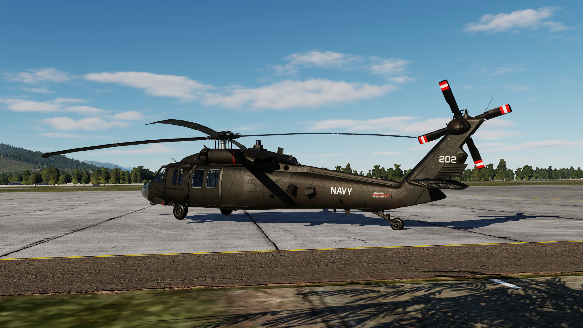 I commissioned whisky.actual to create this skin for the free "H-60 Project" UH-60L mod. It's a Vietnam-era HAL-3 "Seawolves" inspired livery that was painted on an actual Navy HSC-84 "Red Wolves" helo for the "Centennial of Naval Aviation" celebration in 2011. The original aircraft is an HH-60H "Rescue Hawk", BuNo 163787, aka "Seawolf 202". There are many differences between the UH-60L and HH-60H, so some artistic license was required for our goal of capturing the spirit and inspiration behind this unique livery. It's a small way to show my appreciation for all the Navy's special operations support squadrons and I hope we've been able to do that here. For comparison, the last screenshot picture is the actual "Seawolf 202".