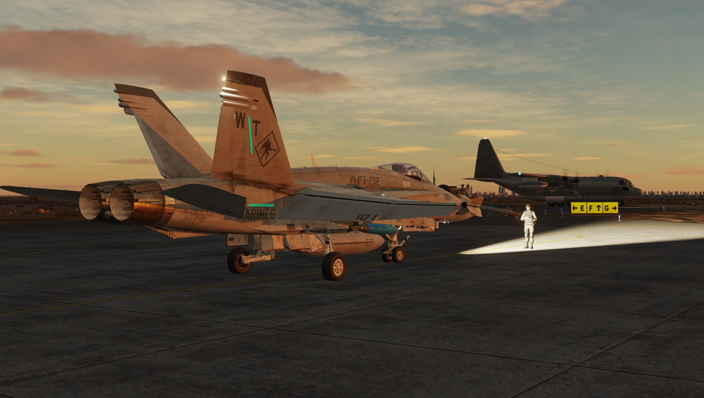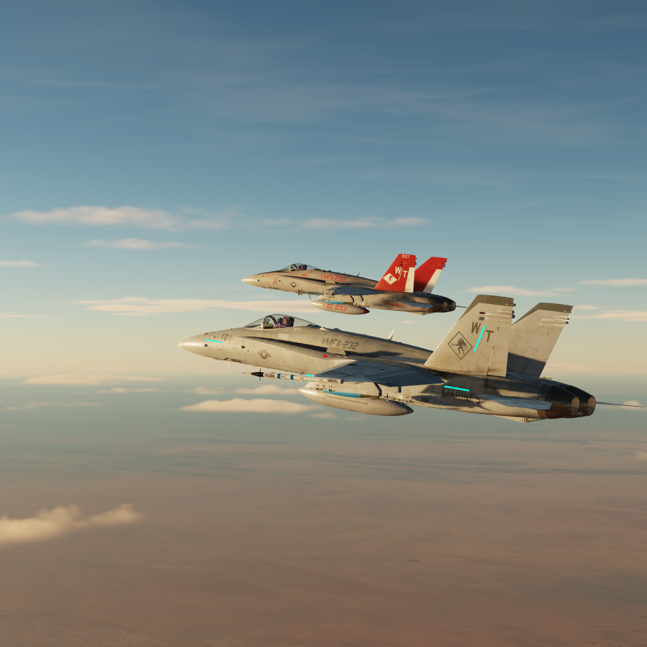 USMC Hornets from VMFA 232 "Red Devils" based on Al-Minhad AFB, in the UAE, are scheduled for basic formation training over the desert on this beautiful morning in the Gulf.