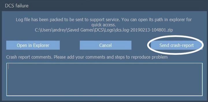 Changements sur le programme de fidélisationSuite à vos remarques concernant le système de “Miles” annoncé précédemment, nous avons prévu quelques changements pour ne pas léser nos clients possédant des points bonus dans le système actuel. Ces points bonus resteront donc utilisables pendant un an à partir de leur date d’acquisition, ou au plus tard le 31 mars 2020. De plus, vous pourrez économiser jusqu’à 30% sur vos achats en utilisant vos points bonus la semaine précédant le lancement du système des “Miles”. Cela inclura les modules des développeurs tiers qui adhèrent au système actuel de points bonus. Outil de compte-rendu de plantageCertains d’entre vous l’ont peut-être déjà remarqué, nous avons intégré dans DCS World un outil permettant d’envoyer directement des informations à l’équipe Eagle Dynamics. Dorénavant, si un plantage se produit, une fenêtre s’affiche qui vous propose d’envoyer à l’équipe de développement les fichiers et journaux nécessaires au diagnostic ainsi qu’un message décrivant le problème.