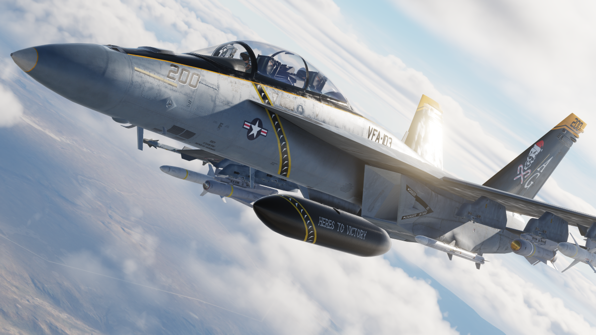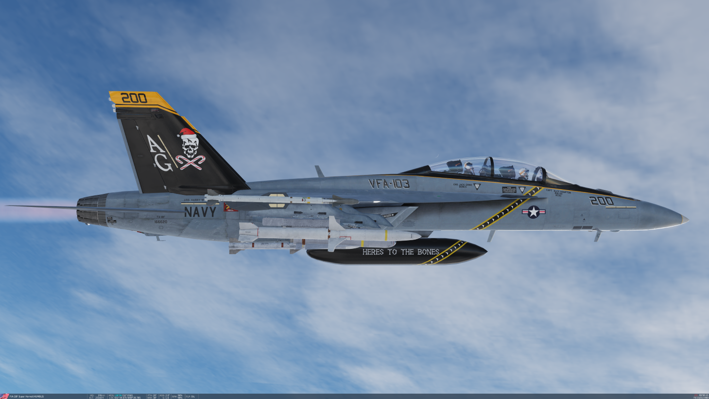 This livery is based on the MEDITERRANEAN SEA (Dec. 13, 2015)  “Jolly Rogers” of Strike Fighter Squadron (VFA) 103, Christmas decal F/A-18F Super Hornet aircraft carrier USS Harry S. Truman (CVN 75). Harry S. Truman Carrier Strike Group is conducting naval operations in the U.S. 6th Fleet area of operations in support of U.S. national security interests in Europe and Africa.