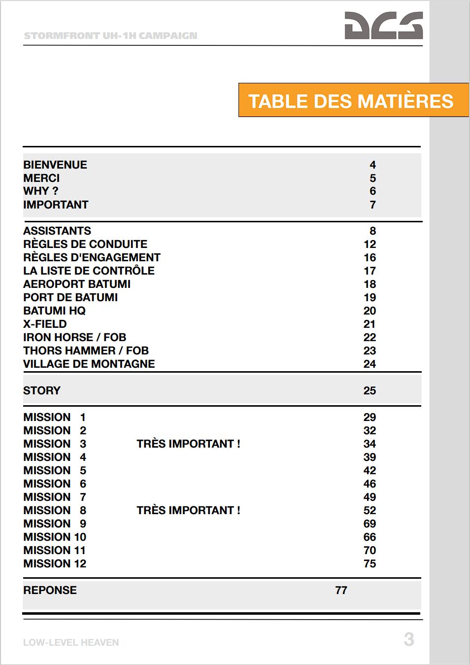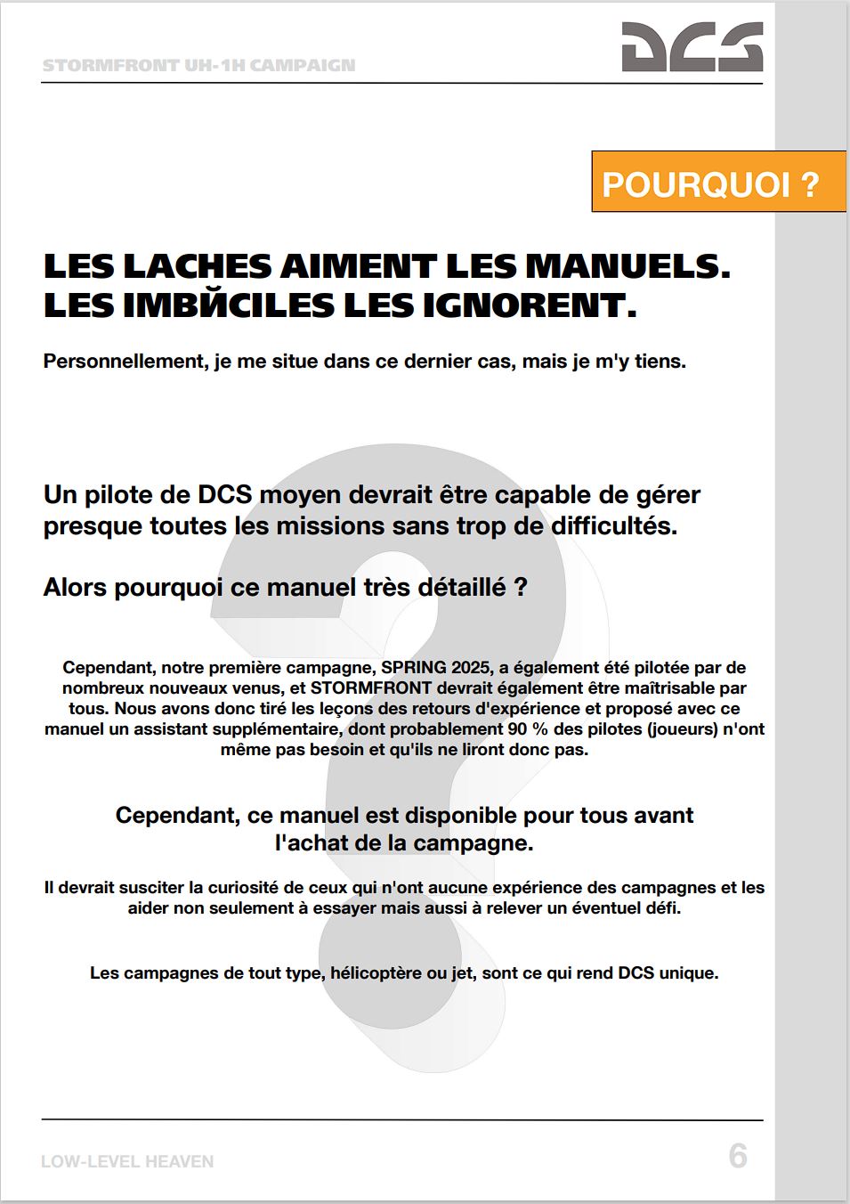 MANUEL DE CAMPAGNE ET DESCRIPTIONS DES MISSIONS
