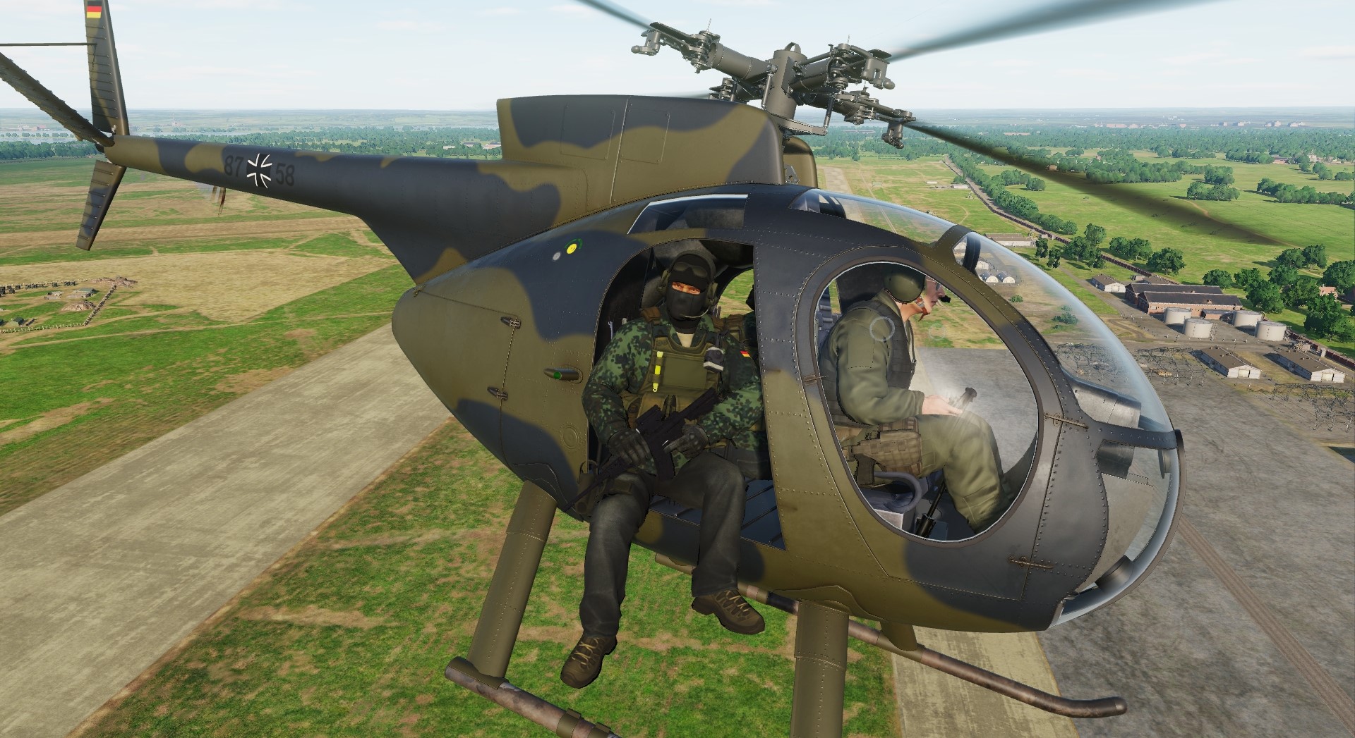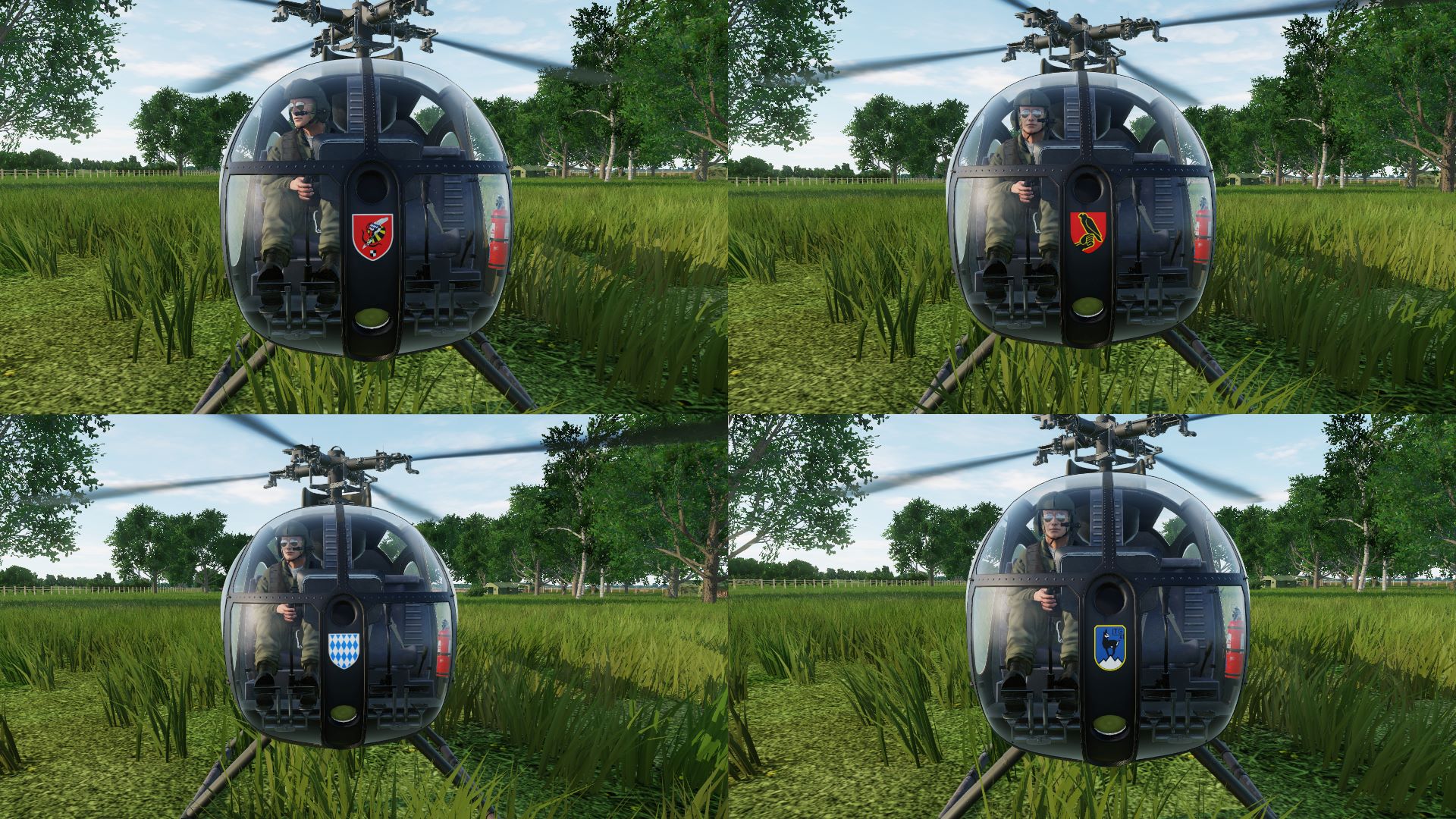 Skinpack of Fictional Liveries to roughly resemble Bundeswehr Heeresflieger Bo 105 and UH-1, for the OH-6A mod, by Tobsen and Eightball.