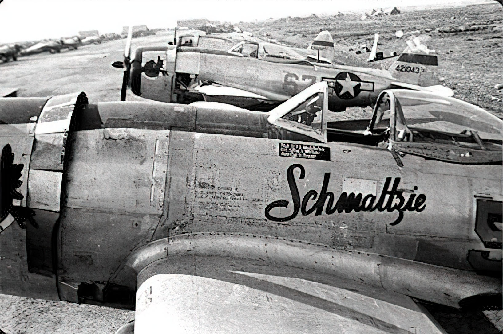Republic P-47D Thunderbolt 'Schmaltzie/Mercedes' of the 65th Fighter Squadron, 57th FG based in Corsica and Italy 1944-45.