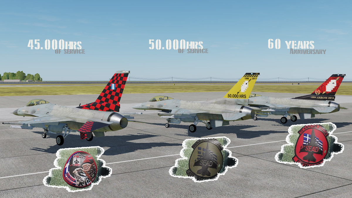 A set of 4 liveries with the default F-16C livery of the Hellenic Air Force, featuring 330, 341(early), 341(current) and 347 Squadrons of the 111 Combat Wing