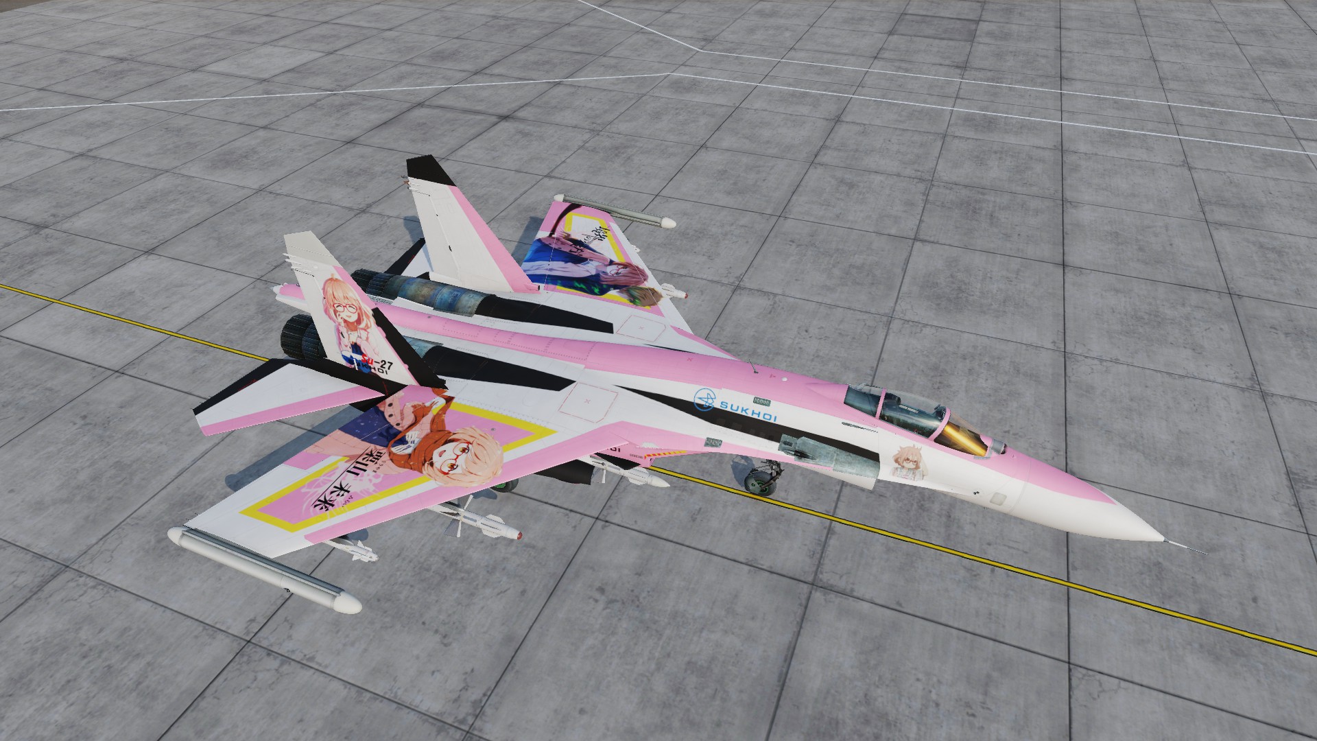 这个涂装纪念施铭羲看过的第一部番剧《境界的彼方》。初中的施铭羲刚刚面临了感情上的挫折和中考的压力,看完这部番后泪流满面。栗山未来也是施铭羲非常喜欢的二次元角色,她随风飘动的衣袂成为施铭羲心中挥之不去的记忆。侧卫也是施铭羲最喜欢的飞机,也是DCS中他飞过最多的机型。施铭羲同时给Su-27制作了这个涂装,大家可以搜索Su-27的涂装下载。