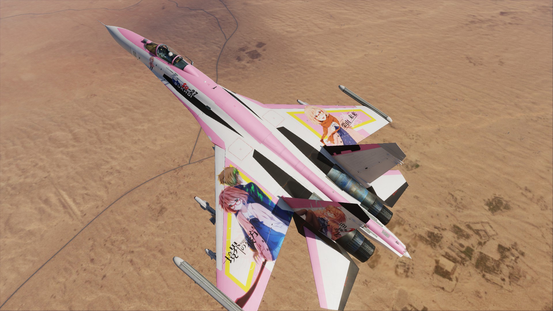 这个涂装纪念施铭羲看过的第一部番剧《境界的彼方》。初中的施铭羲刚刚面临了感情上的挫折和中考的压力,看完这部番后泪流满面。栗山未来也是施铭羲非常喜欢的二次元角色,她随风飘动的衣袂成为施铭羲心中挥之不去的记忆。侧卫也是施铭羲最喜欢的飞机,也是DCS中她飞过最多的机型。于是施铭羲就给Su-27制作了这个涂装。同时这个涂装还有J-11A的版本,可以搜索J-11A的涂装下载。