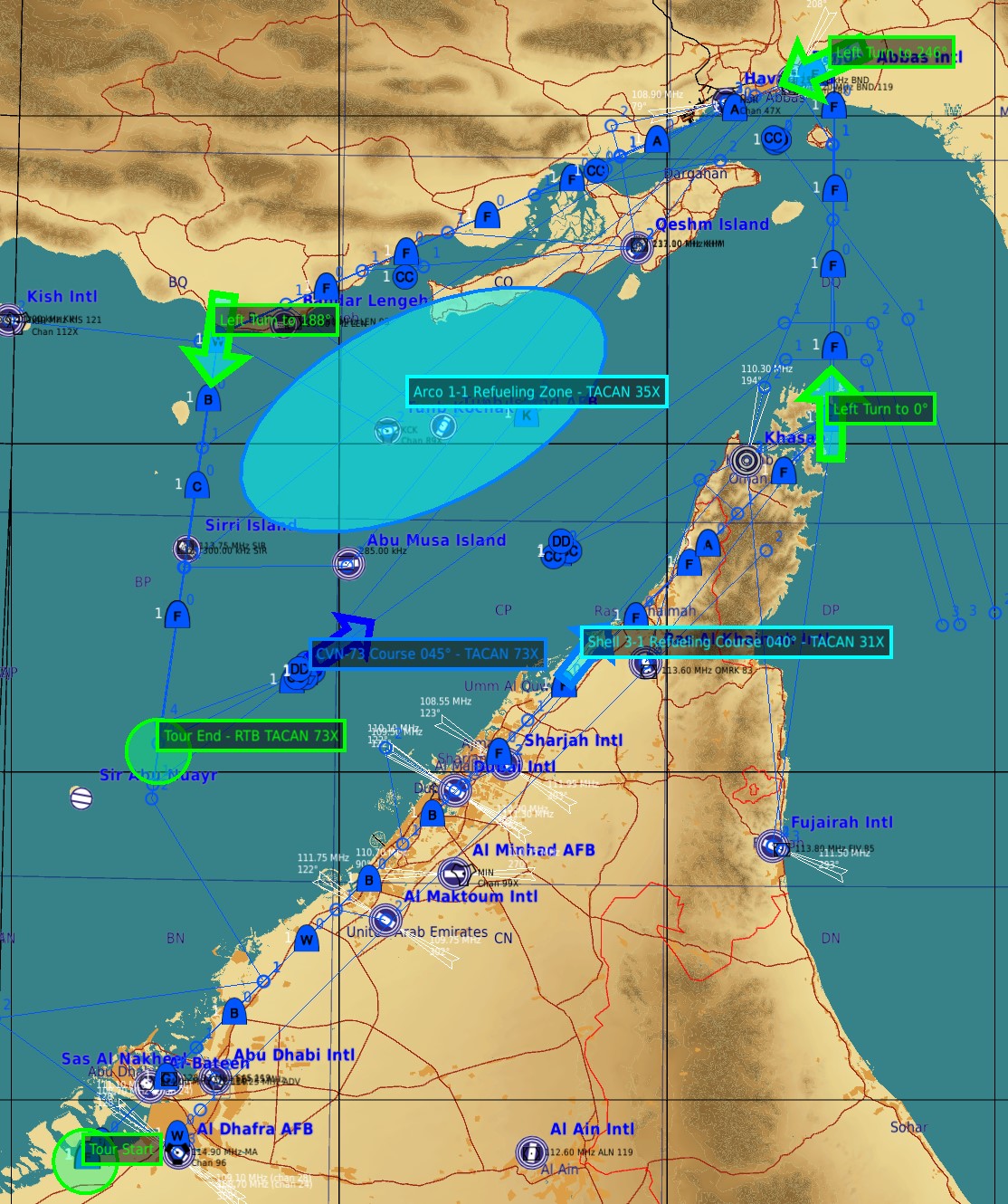 Follow Maverick and Goose across the Persian Gulf while various aircraft fall into formation during the flight.