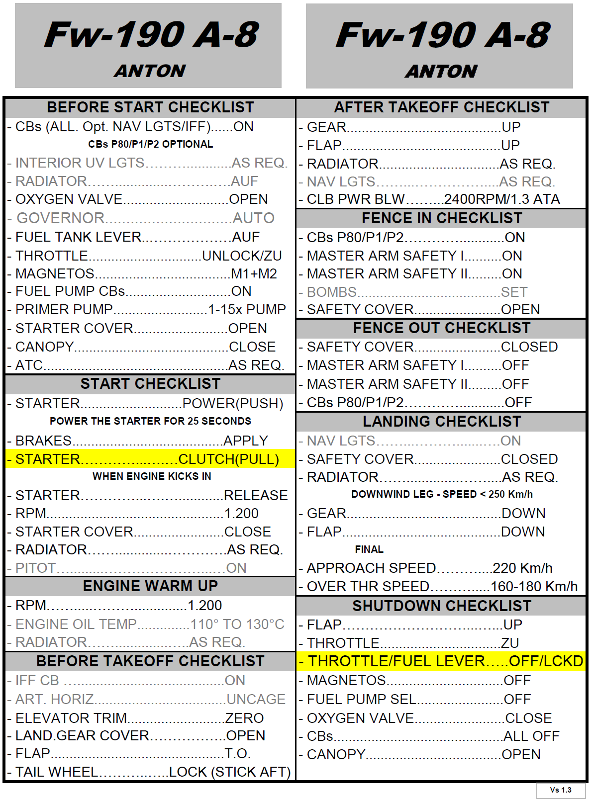This is a checklist far from the real one, but that will get you flying quick and safely. Use at your discretion. (VS 1.1 Night Version - Update BEFORE START, AFTER START, TAKE OFF, LANDING and SHUTDOWN Checklists. Introduced a Navigation Checklist)