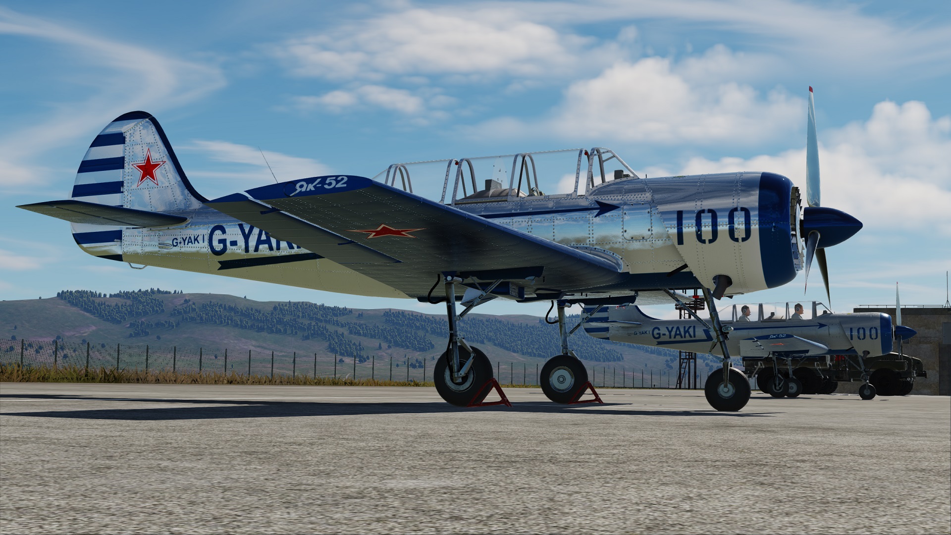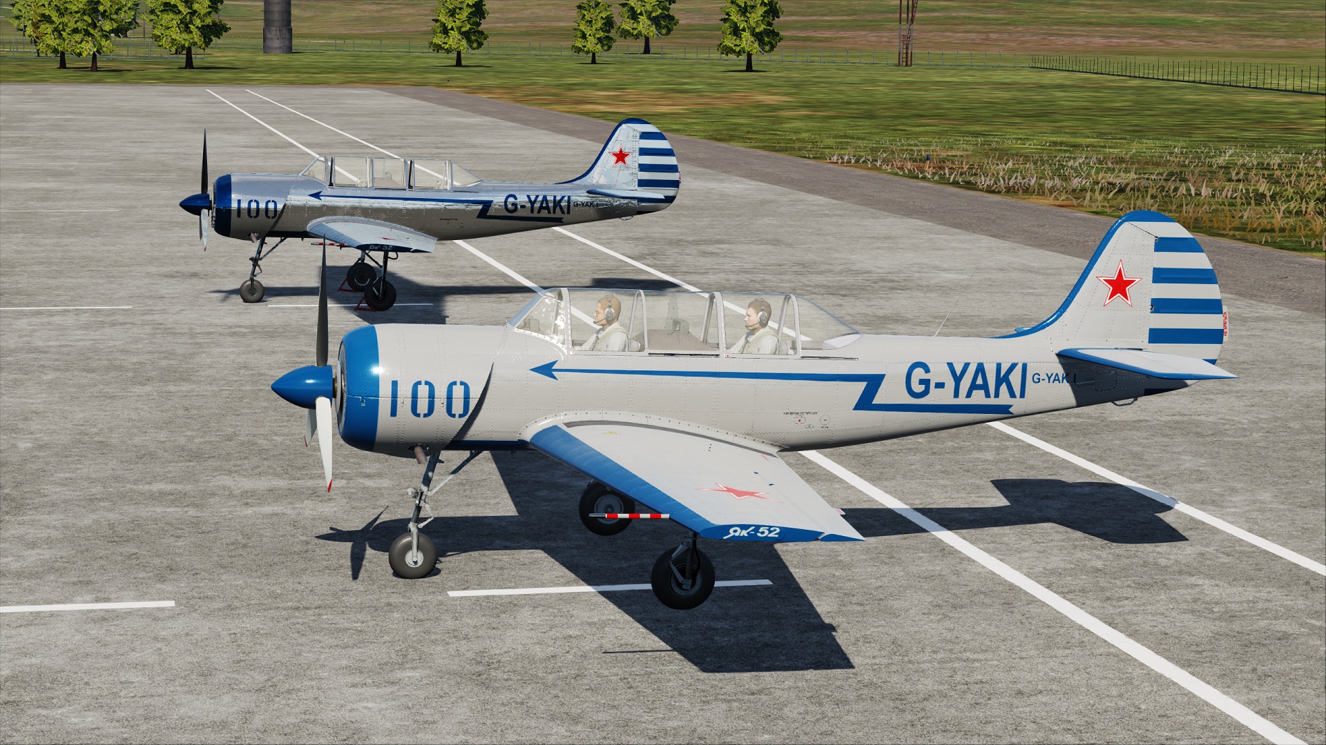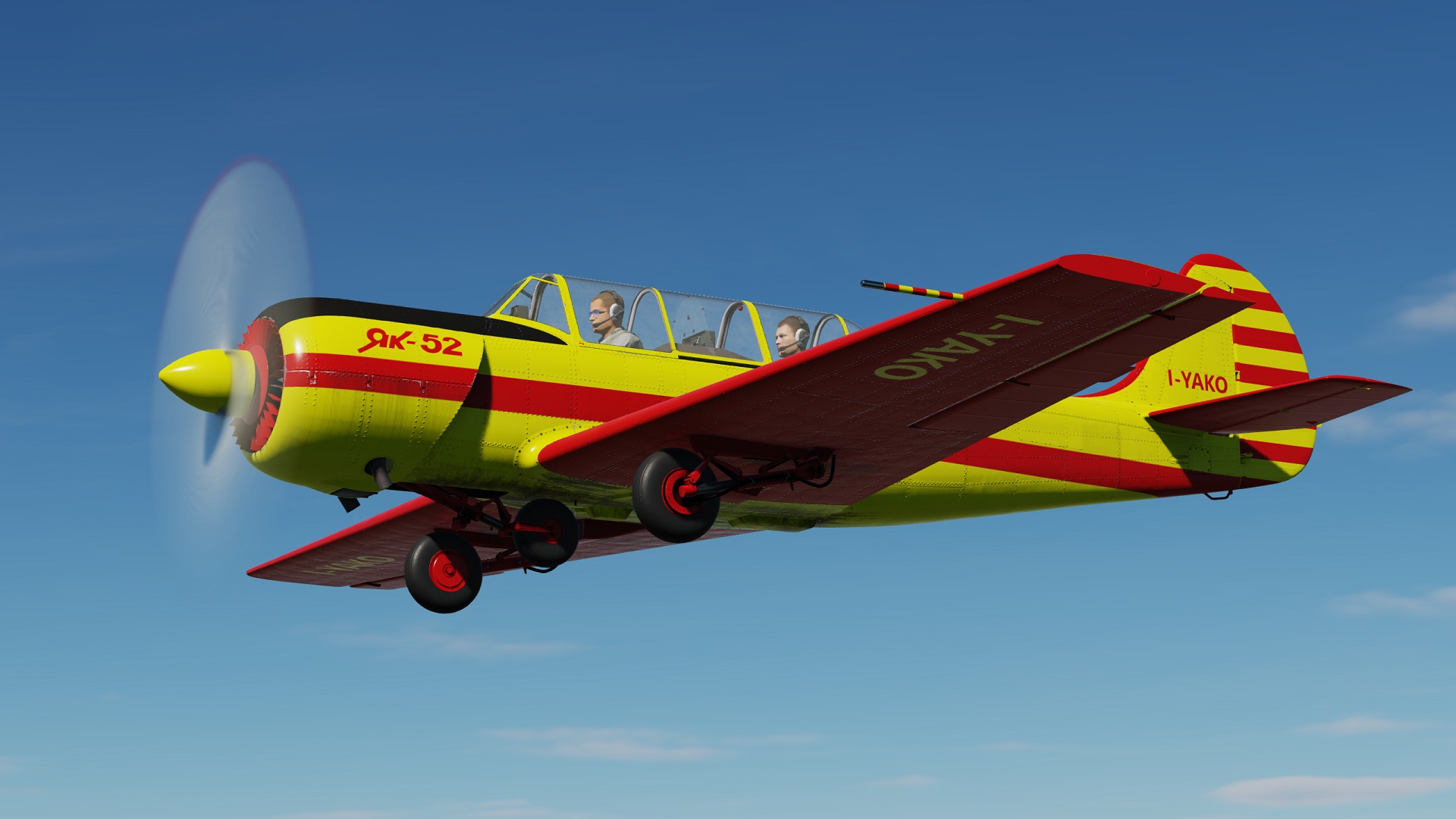 Two civilian liveries for the Yak-52. One that is as close as i could do it, with my limited experience in livery making, to the real aircraft as shown in one of the photos; the other one is the same livery but fully chromed, bacause why not....