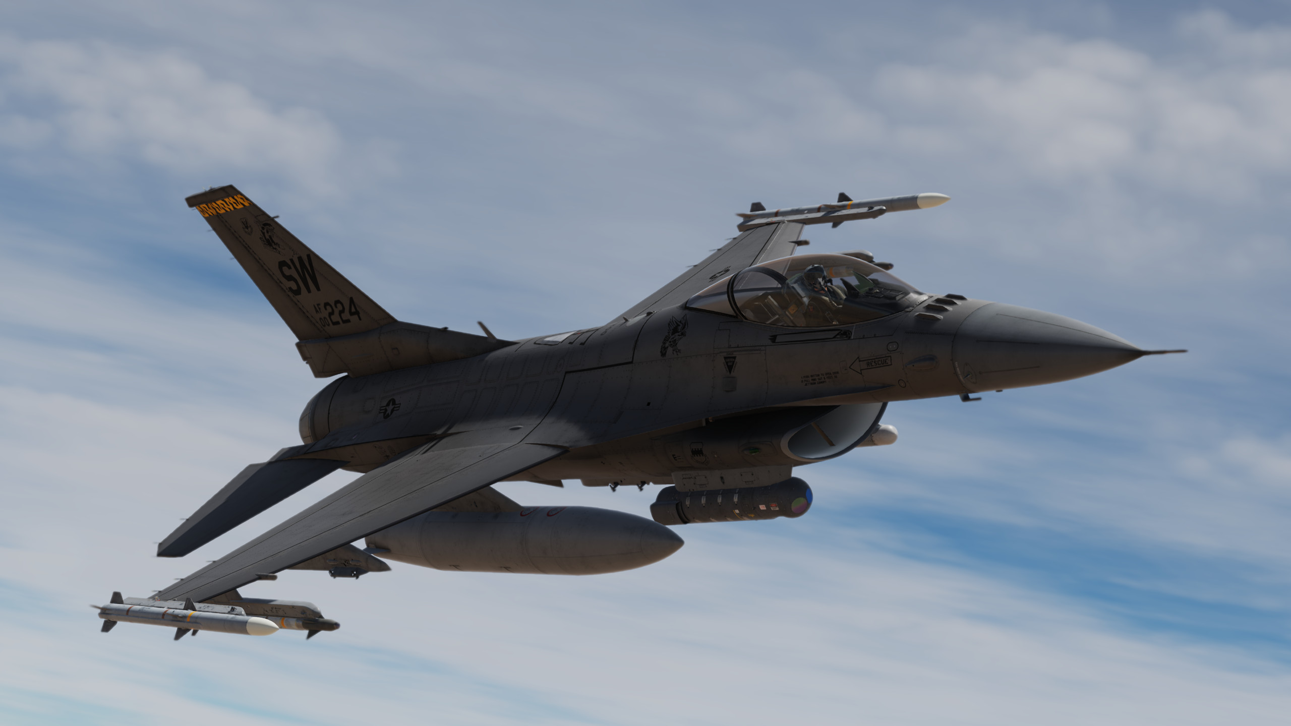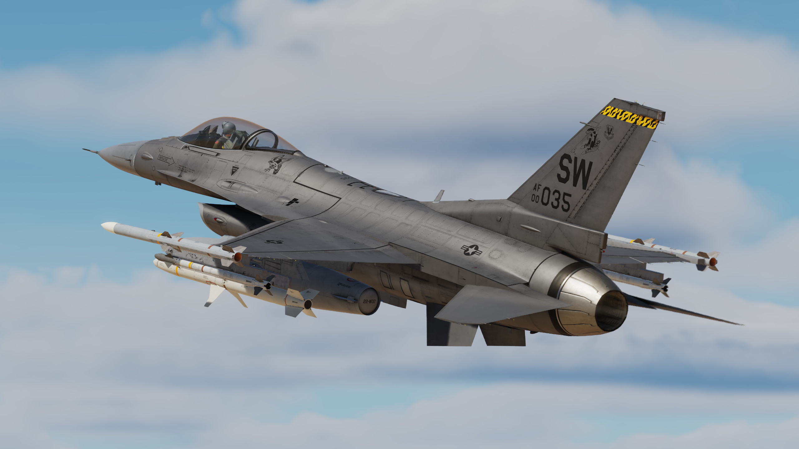 This mod includes a new flyable F-16C Block 50 unit with a RAM (Radar Absorbent Materials) coating called "Have Glass" that reduces the Vipers RCS (Radar Cross Section).