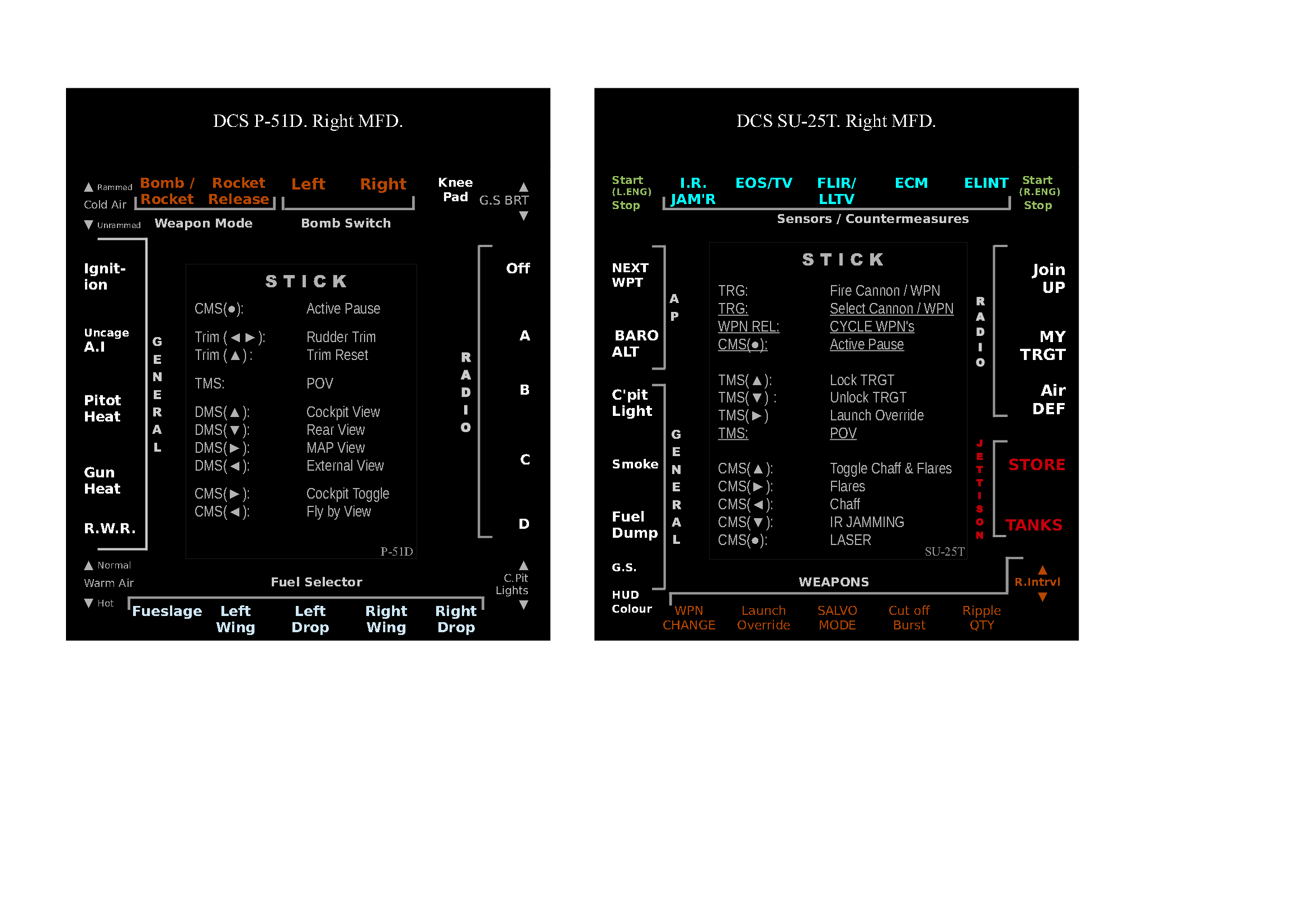 Note 2: Some Commands are displayed in center of each MFD display for both the Throttle and Joystick. Underlined commands do not need the joystick paddle/pinky modifier.