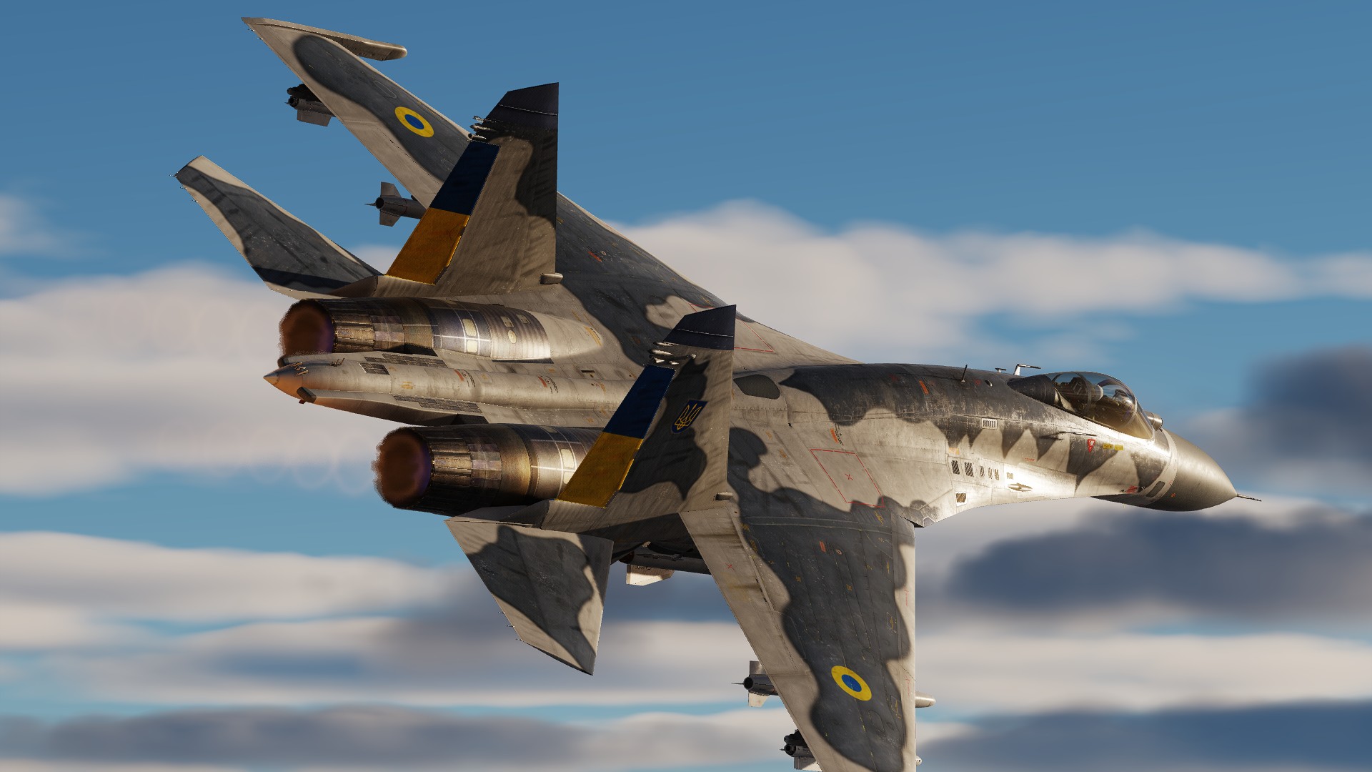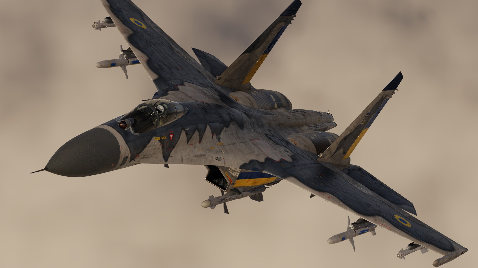 A upgrade for the Air Force Ukraine Blue Early skin on the Su-27. More info and recommended install below.